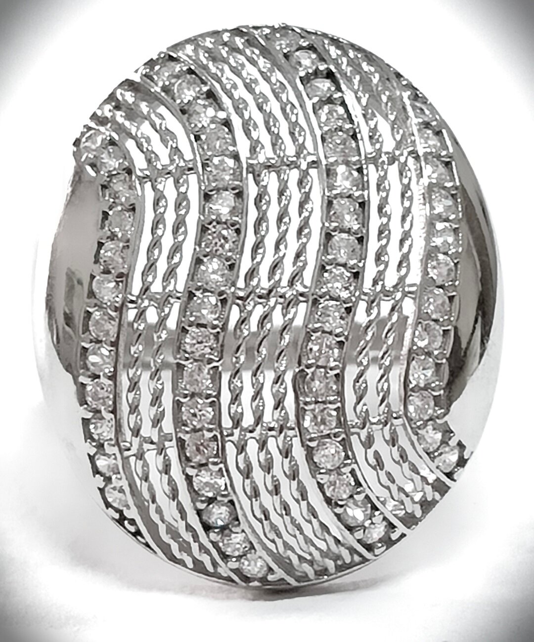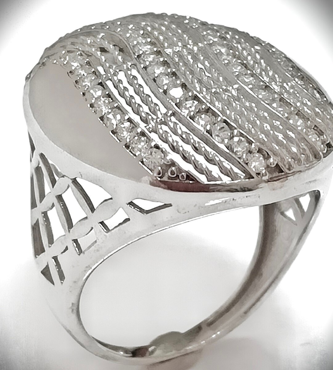 Отделка кольца родированием придает ему дополнительный блеск и защищает от царапин и потертостей.