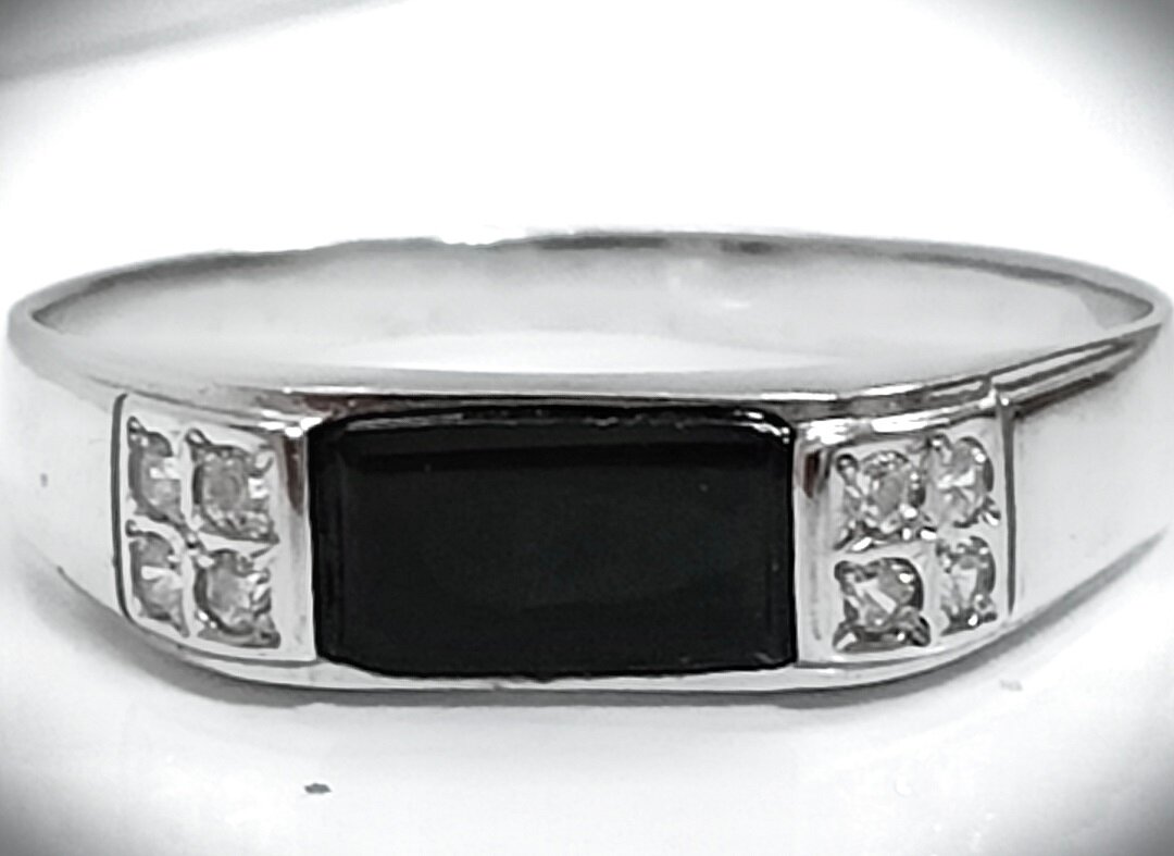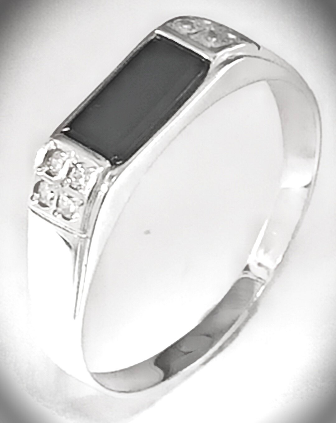 Вставка из оникса и фианита придает изделию особый шарм и стиль. Прямоугольная форма вставок подчеркивает геометрию кольца и делает его еще более привлекательным.