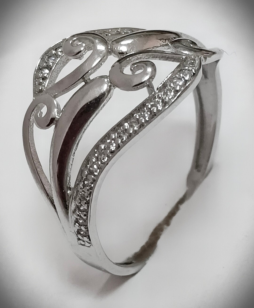 Отделка кольца родированием придает ему дополнительный блеск и защищает от царапин и потертостей.