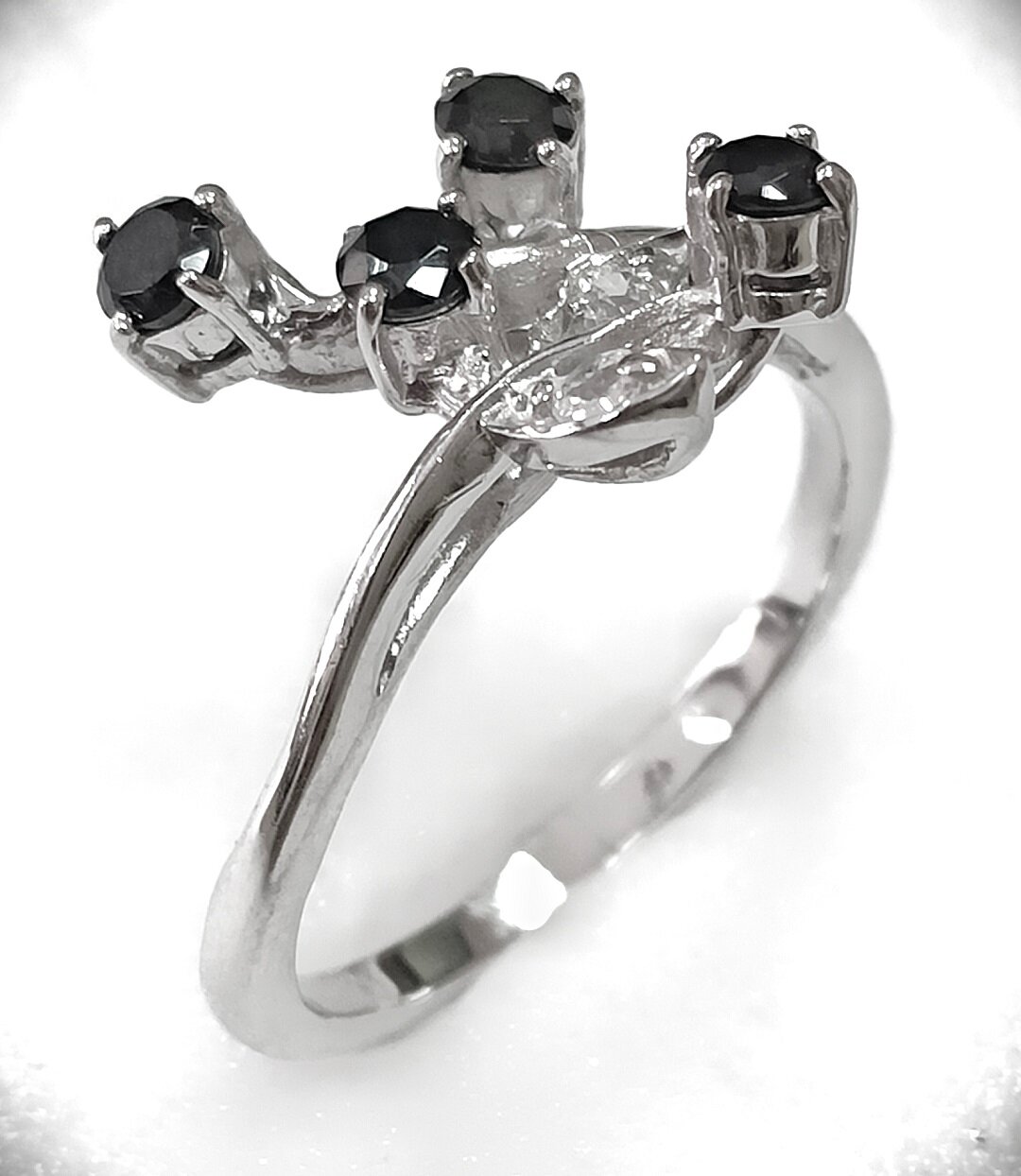 Вставка из черного и белого фианита придает кольцу особый шарм и элегантность. Фианиты - это искусственные камни, которые отличаются своим блеском и игрой света, что делает украшение еще более привлекательным.