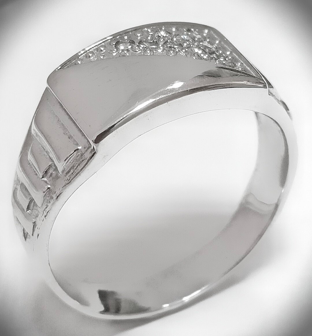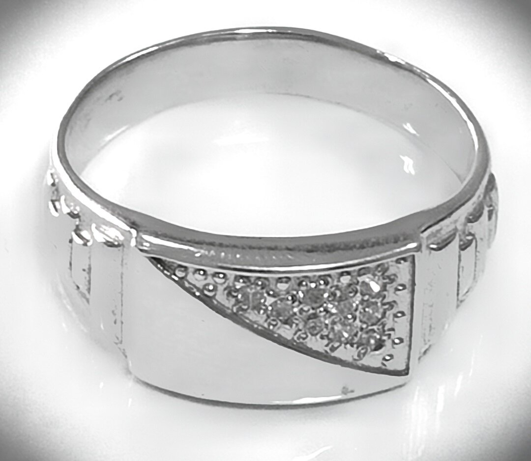 Отделка кольца родированием обеспечивает защиту от царапин и потертостей, а также придает изделию дополнительный блеск.