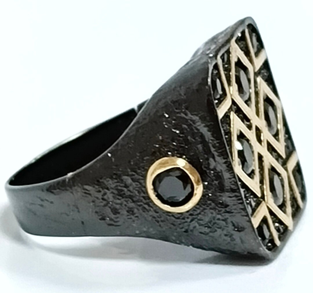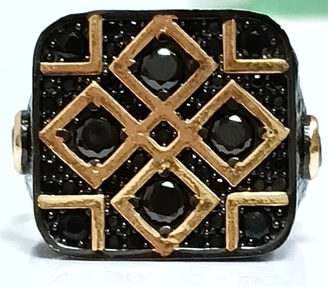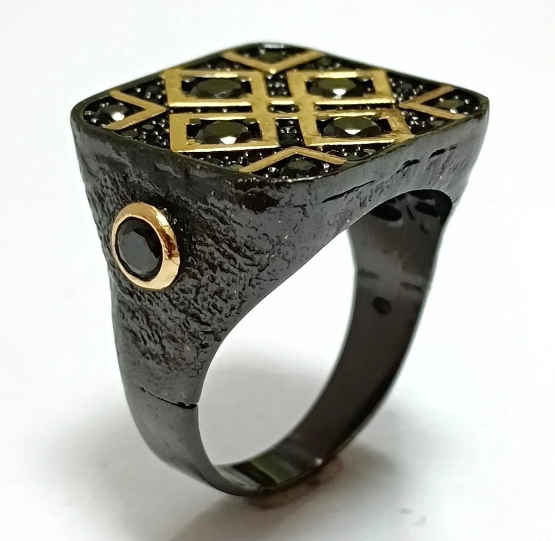 Кольцо украшено позолотой, что придает ему особый шик и блеск. Золочение и оксидирование - это две техники отделки, которые используются для создания уникального и яркого дизайна.