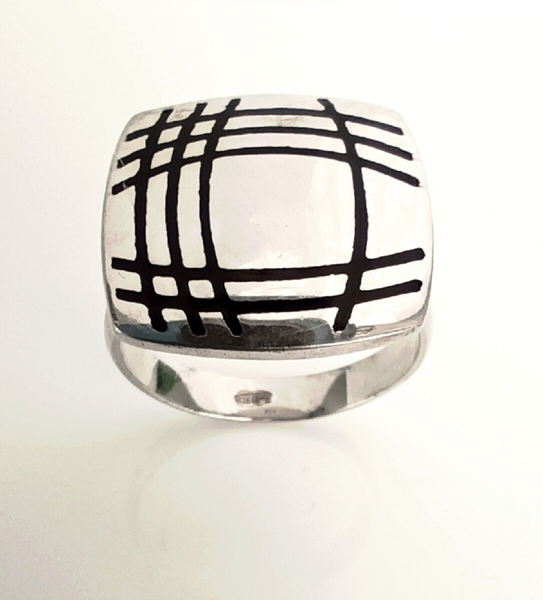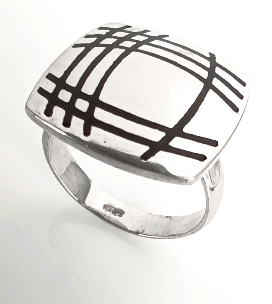 Особенностью кольца является вставка из эмали черного цвета, которая придает изделию неповторимый и яркий вид. Эмаль - это материал, который отличается своей прочностью и устойчивостью к внешним воздействиям.
