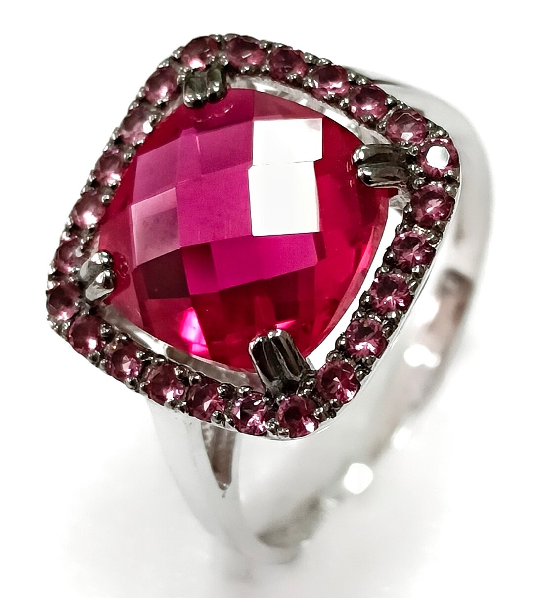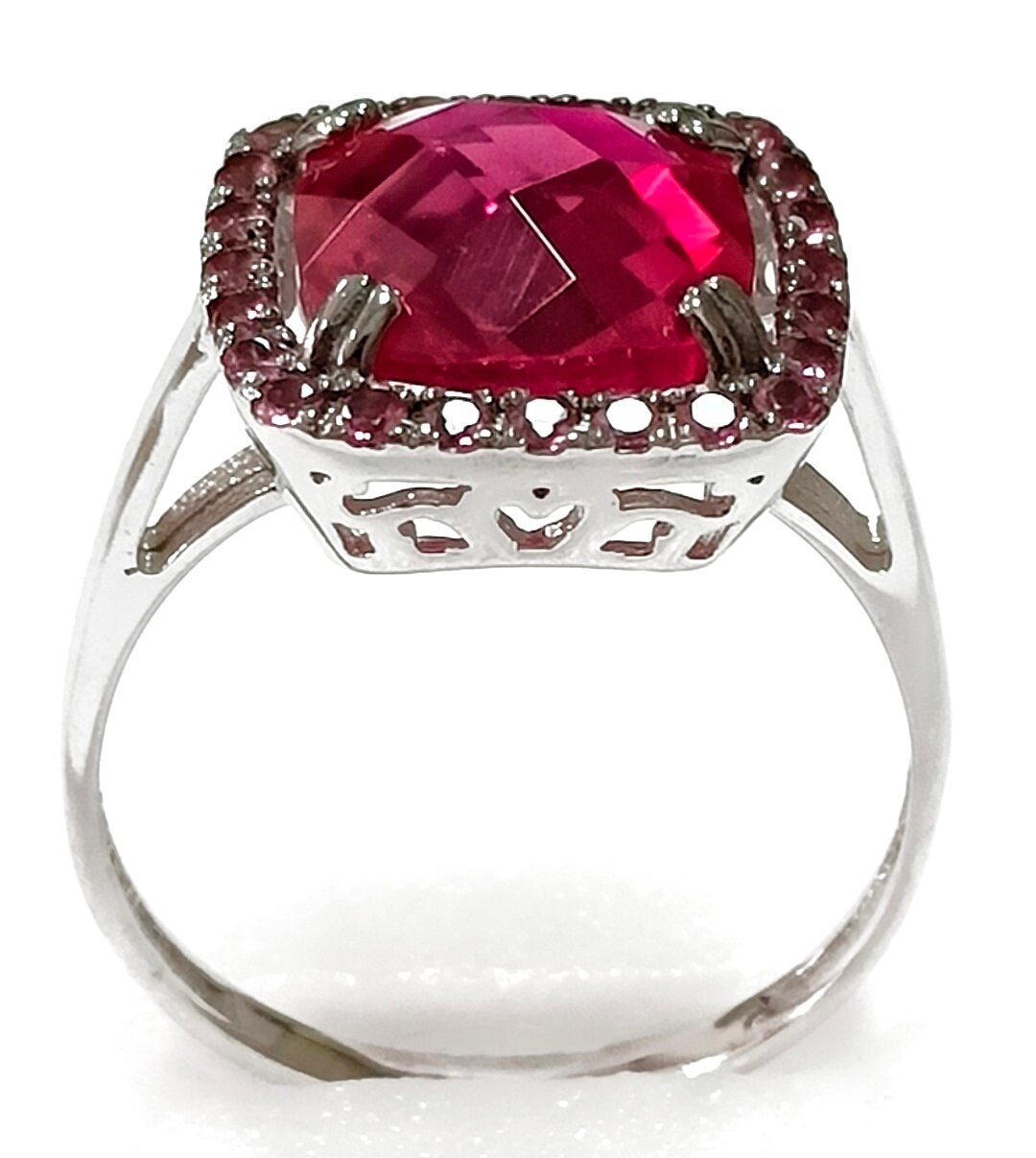 Вставка из синтетического рубина и фианита придает кольцу роскошный вид и делает его ярким акцентом в любом образе. Квадратная форма вставки подчеркивает геометрию кольца и добавляет ему элегантности.