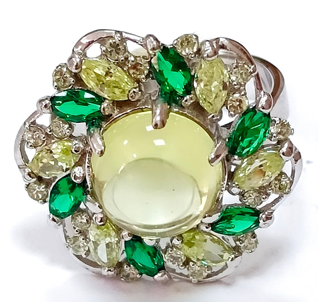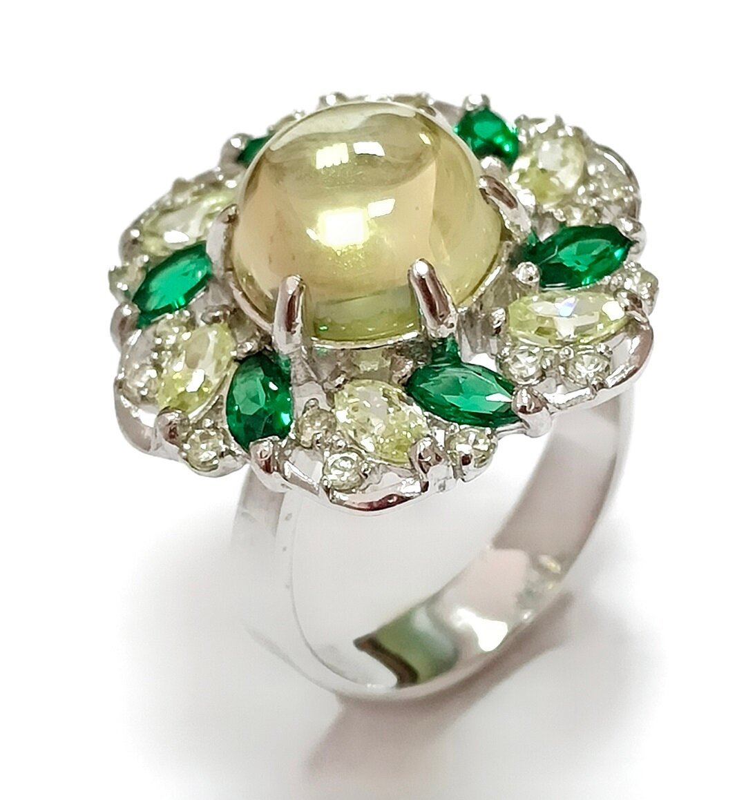 Вставка из фианита, нанокристалла и изумруда придает кольцу особый шарм и блеск. Благодаря этому, кольцо будет выглядеть стильно и актуально в любой ситуации.