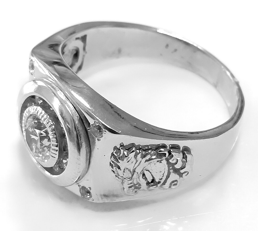 Кольцо выполнено в виде печатки, что придает ему особый шарм и статусность.