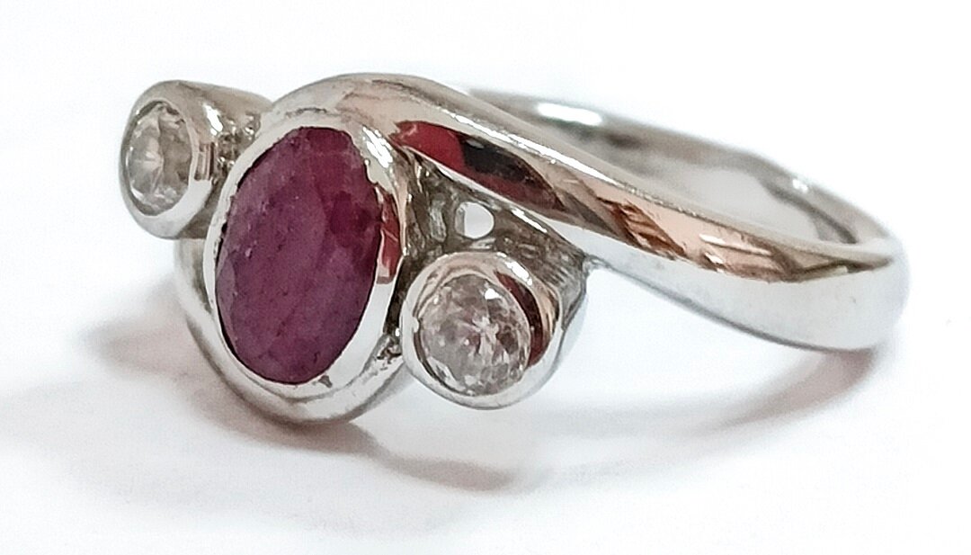 Ювелирное кольцо из серебра 925 пробы с драгоценным камнем рубин и фианитом.