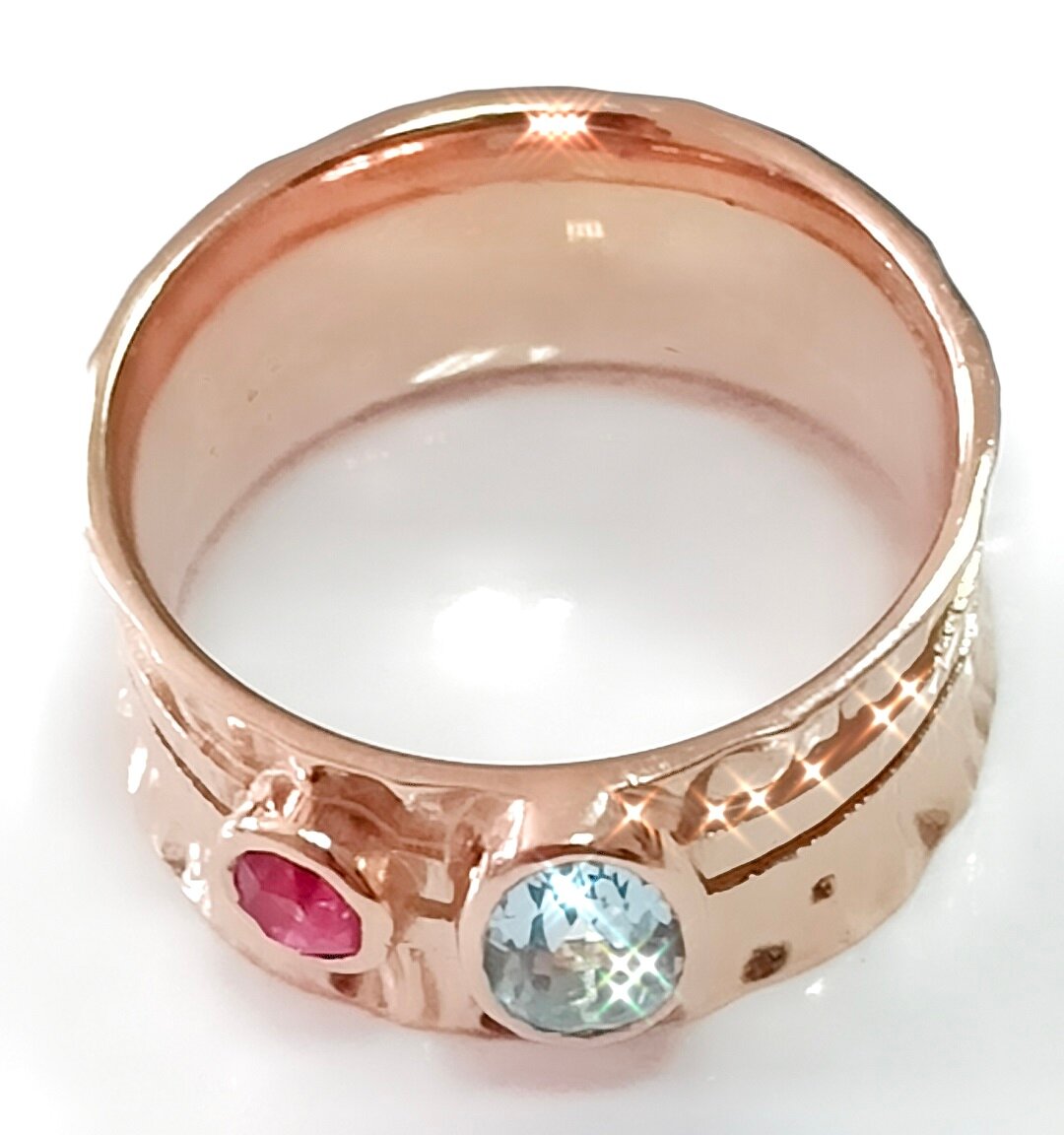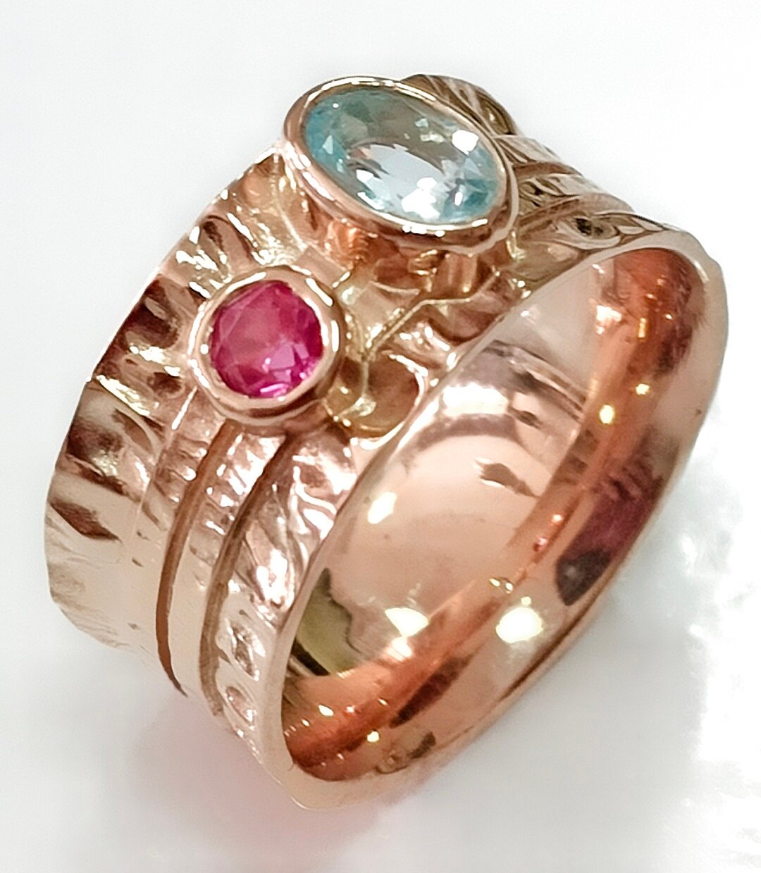 Вставка из топаза придает украшению неповторимый блеск и сияние. Рубин, в свою очередь, добавляет роскоши и элегантности, делая кольцо еще более привлекательным.