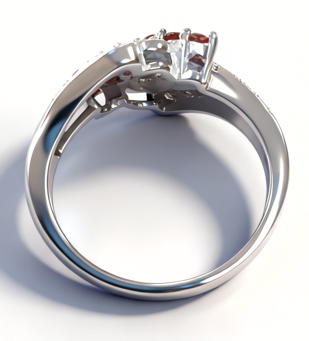 Ювелирное кольцо из серебра 925 пробы с вставкой граната и фианитами.