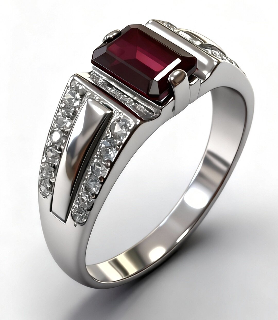 Ювелирное кольцо из серебра 925 пробы с вставкой граната и фианитами - стильный и элегантный аксессуар для современных мужчин. Изготовленное из качественного серебра, это кольцо станет прекрасным дополнением к вашему образу и подчеркнет ваш изысканный вкус.