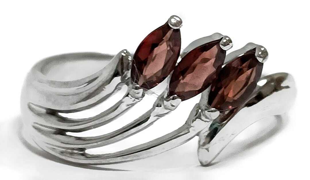 Ювелирное кольцо из серебра 925 пробы с вставкой из граната.