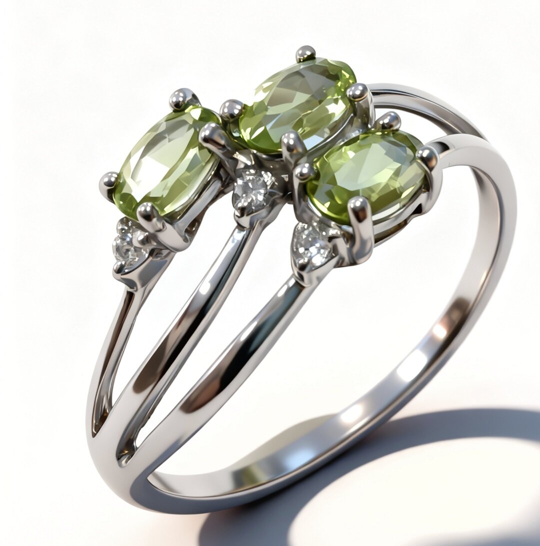 Ювелирное кольцо из серебра 925 пробы с хризолитом и фианитами представляет собой изысканное и стильное украшение, которое станет прекрасным дополнением к вашему образу.