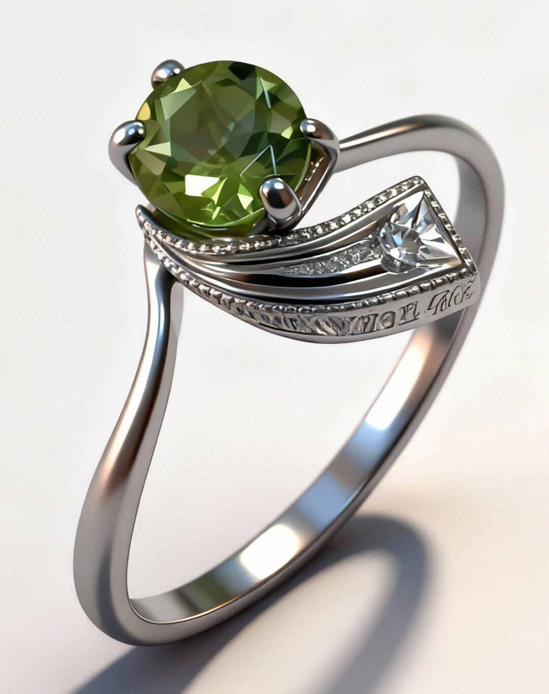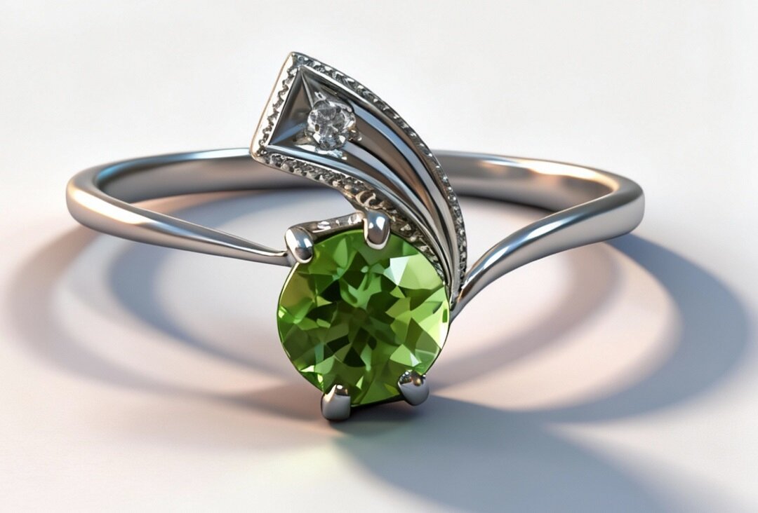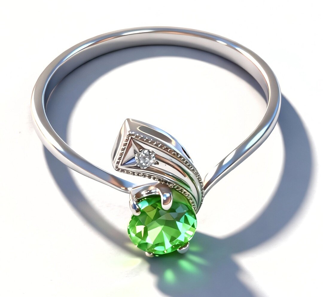 Хризолит, используемый в качестве вставки, придает кольцу особый шарм и блеск. Этот камень известен своими магическими свойствами, которые способствуют улучшению настроения и самочувствия. Фианиты, расположенные вокруг хризолита, добавляют изделию изысканности и блеска.