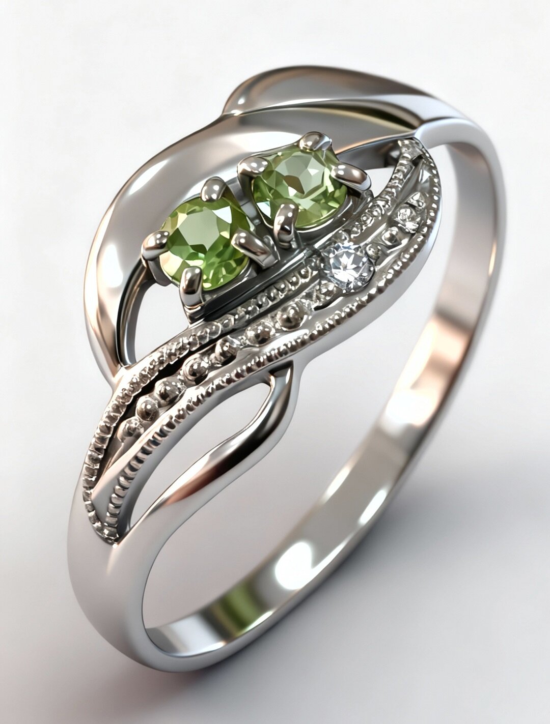 Выбирайте ювелирное кольцо из серебра 925 пробы с хризолитом и фианитами и наслаждайтесь красотой и качеством этого изысканного украшения.