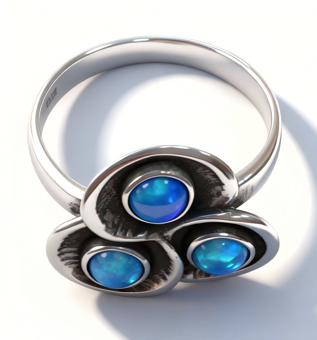 Опал, используемый в качестве вставки, придает кольцу неповторимый шарм и блеск. Этот камень известен своими магическими свойствами и считается символом любви, удачи и процветания.