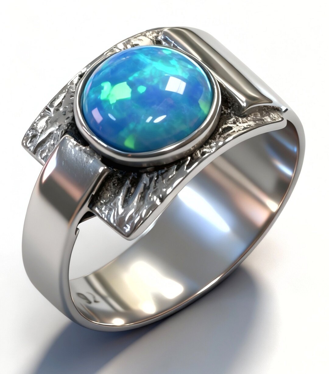 Опал, используемый в качестве вставки, придает кольцу особый шарм и блеск. Этот камень известен своими магическими свойствами и считается символом любви, удачи и процветания.
