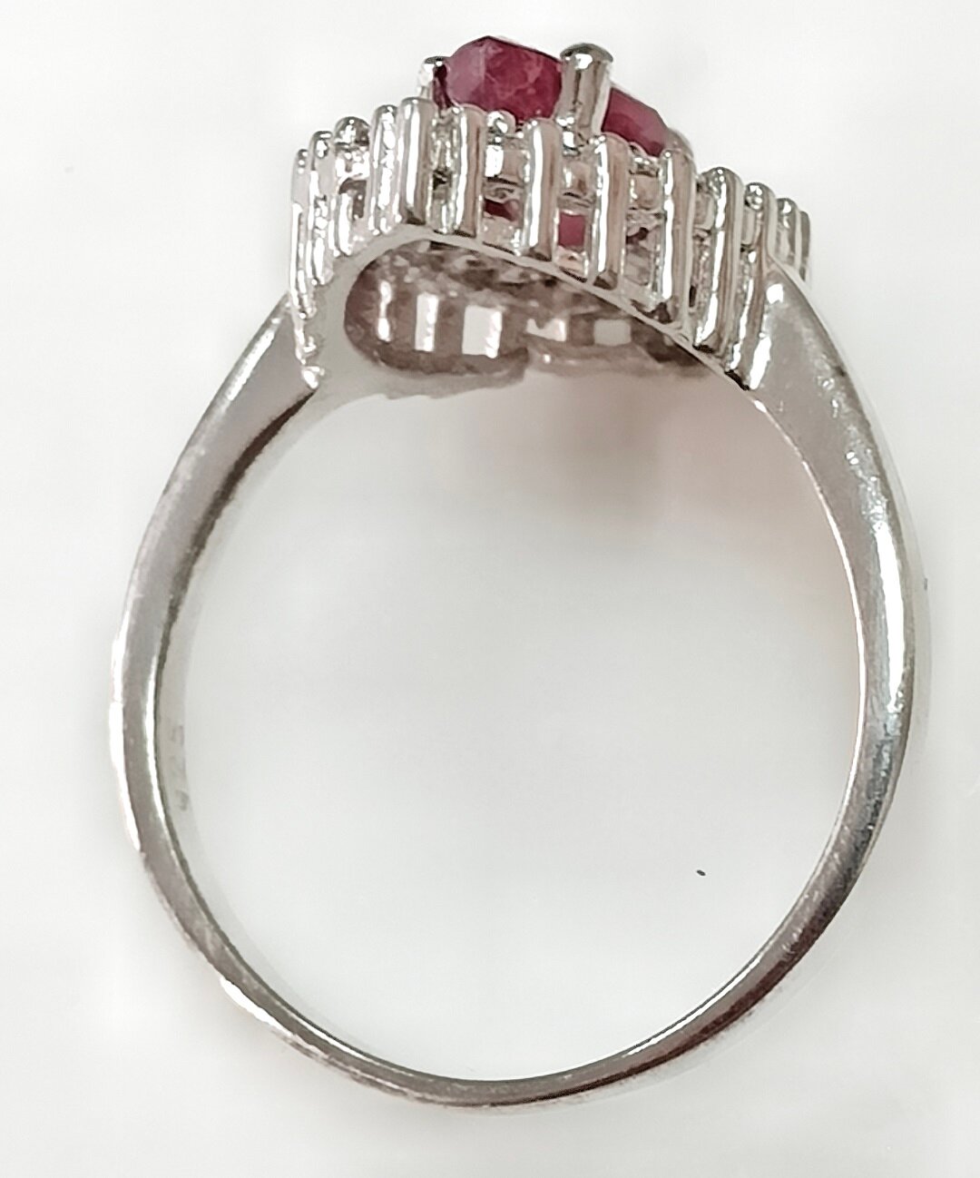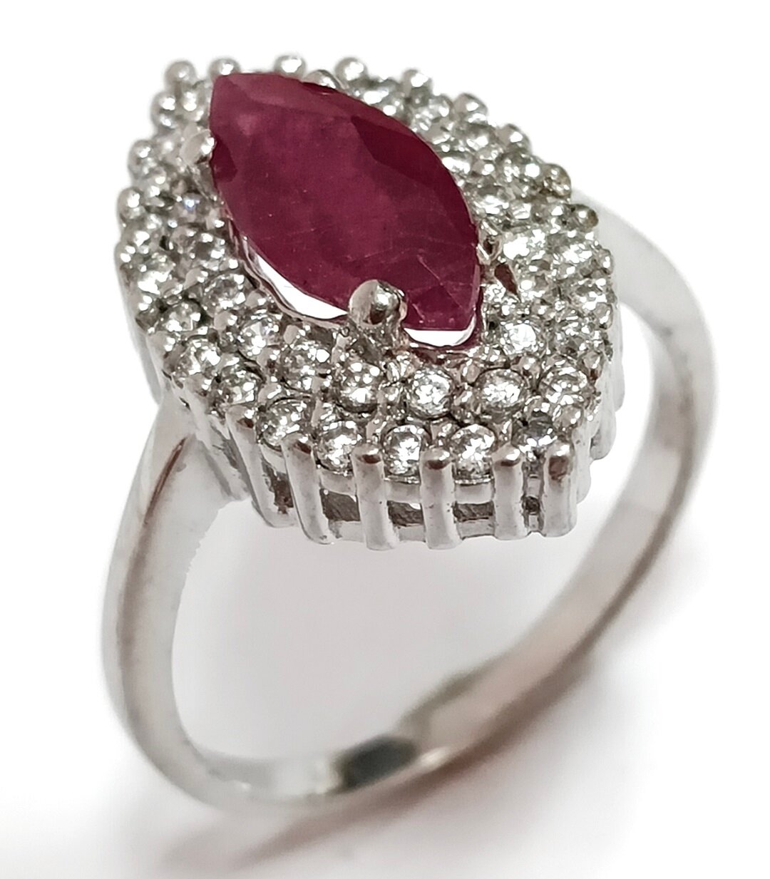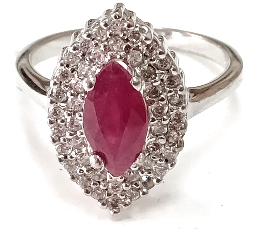 Ювелирное кольцо из серебра 925 пробы с рубиновой вставкой и фианитами.