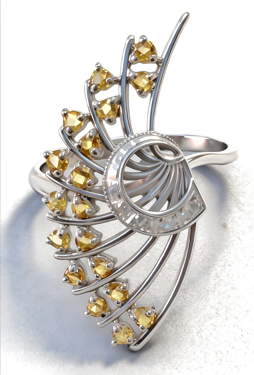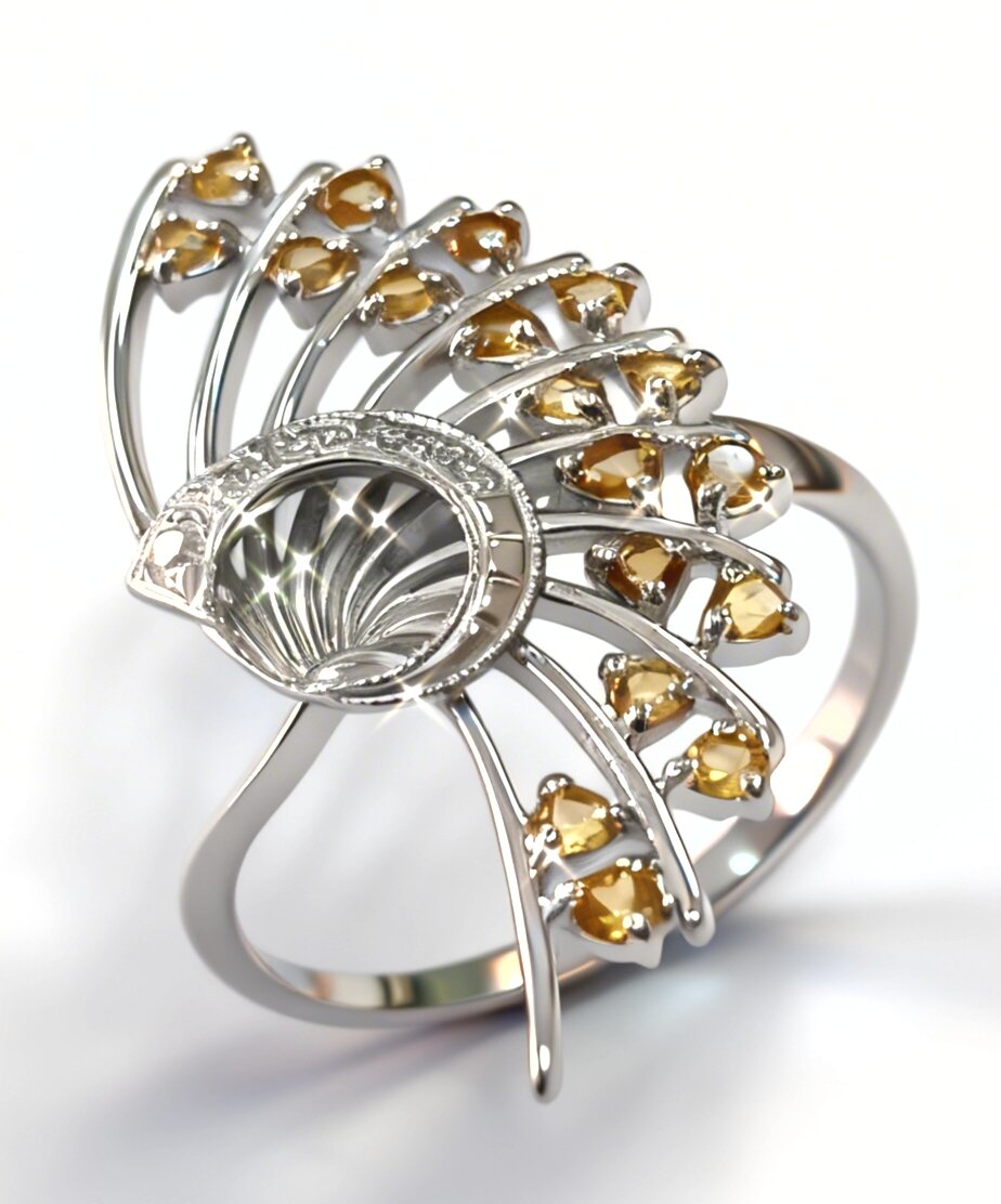 Вставка из цитрина придает украшению особый шарм и изысканность. Этот камень обладает теплым и мягким блеском, который подчеркивает красоту и блеск серебра.