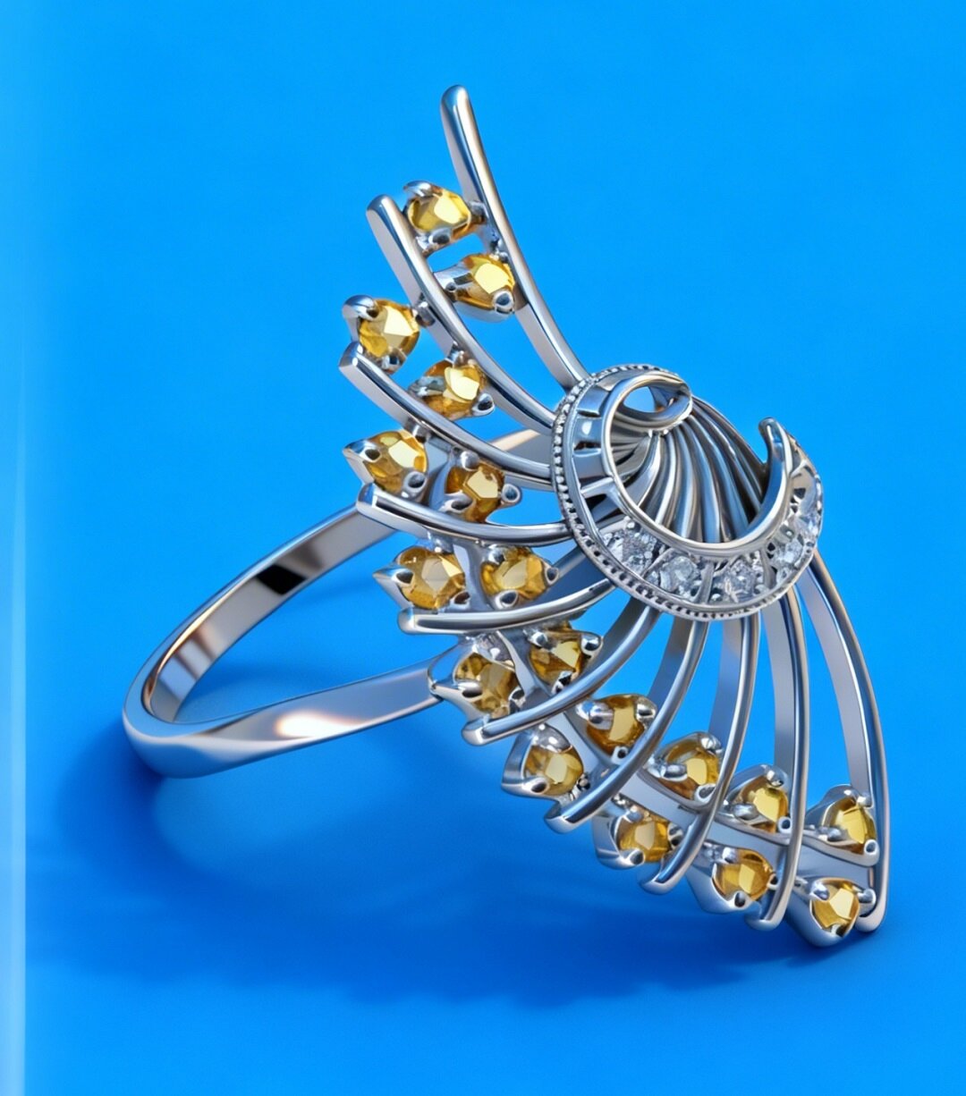 Ювелирное кольцо из серебра 925 пробы с цитрином и фианитами представляет собой изысканное и стильное украшение, которое станет прекрасным дополнением к вашему образу.