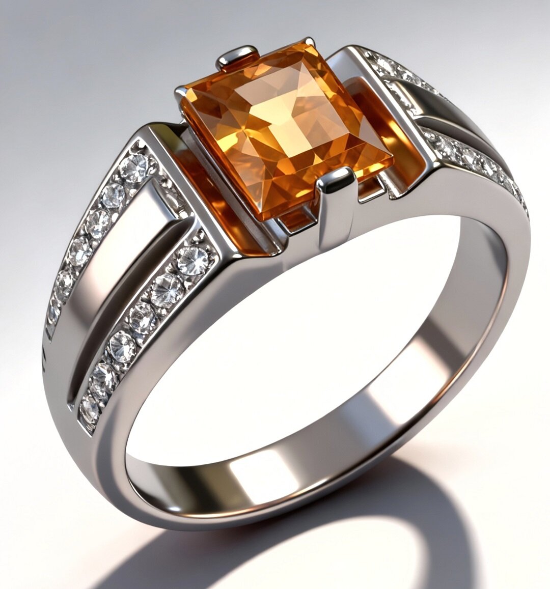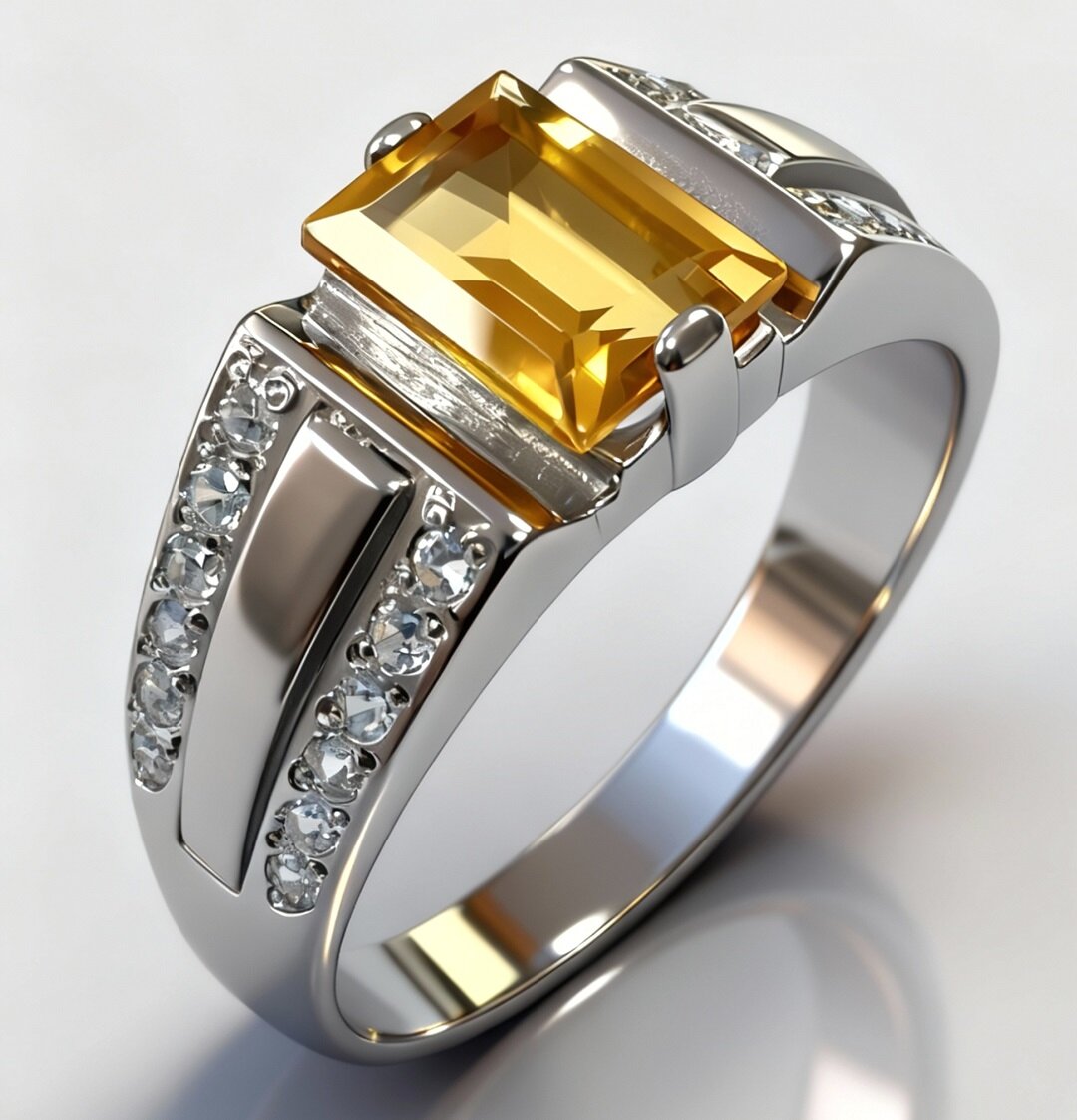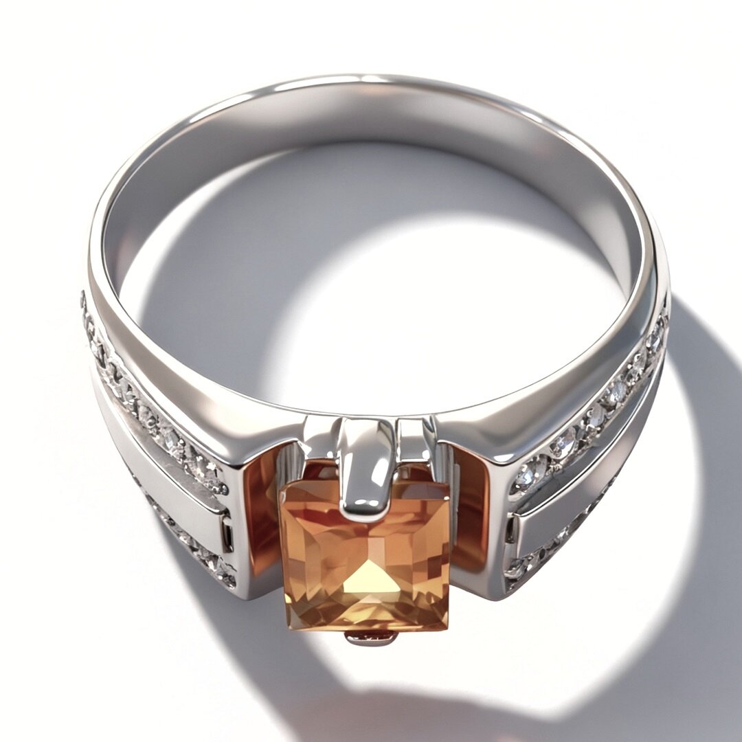 Цитриновая вставка придает кольцу особый шарм и изысканность. Этот камень обладает теплым золотистым оттенком и прекрасно сочетается с другими камнями, такими как фианиты.