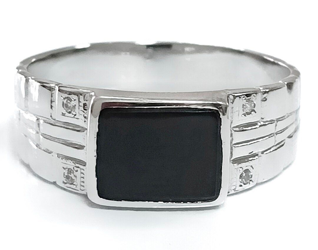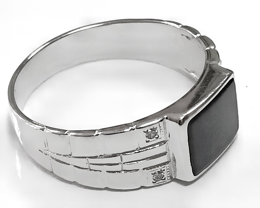 Мужской перстень из серебра с фианитами и ониксом синтетическим станет отличным дополнением к вашему образу.