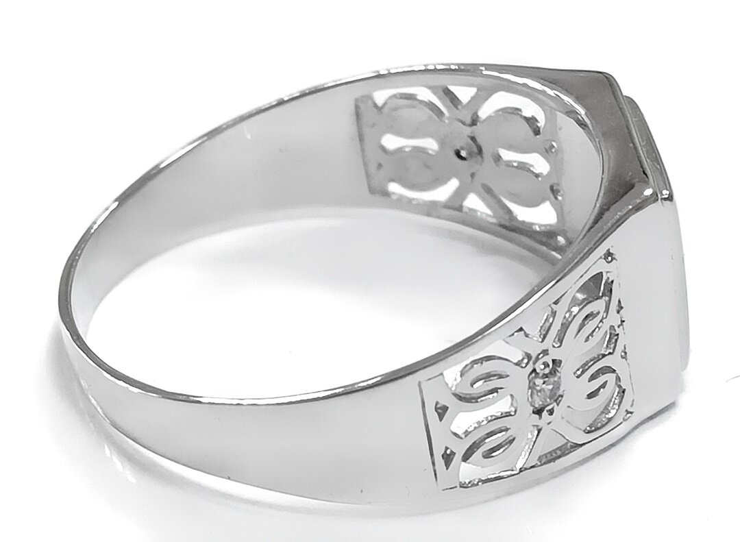 Модель кольца - печатка, что придает ему особый шарм и статусность. Это кольцо станет отличным выбором для тех, кто ценит элегантность и классику в ювелирных изделиях.