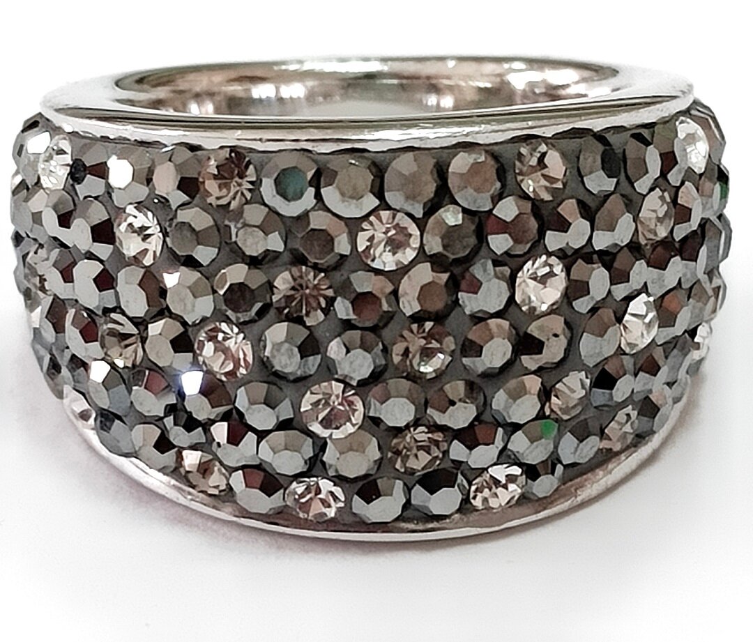 Вставка из кристаллов Swarovski придает кольцу особый шик и блеск. Форма вставки - круг, что делает украшение еще более элегантным и стильным.