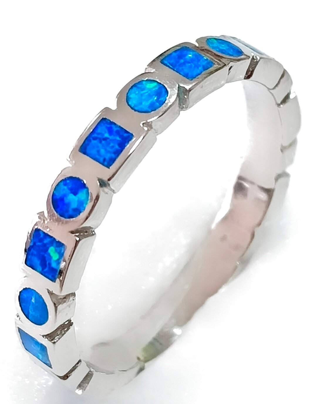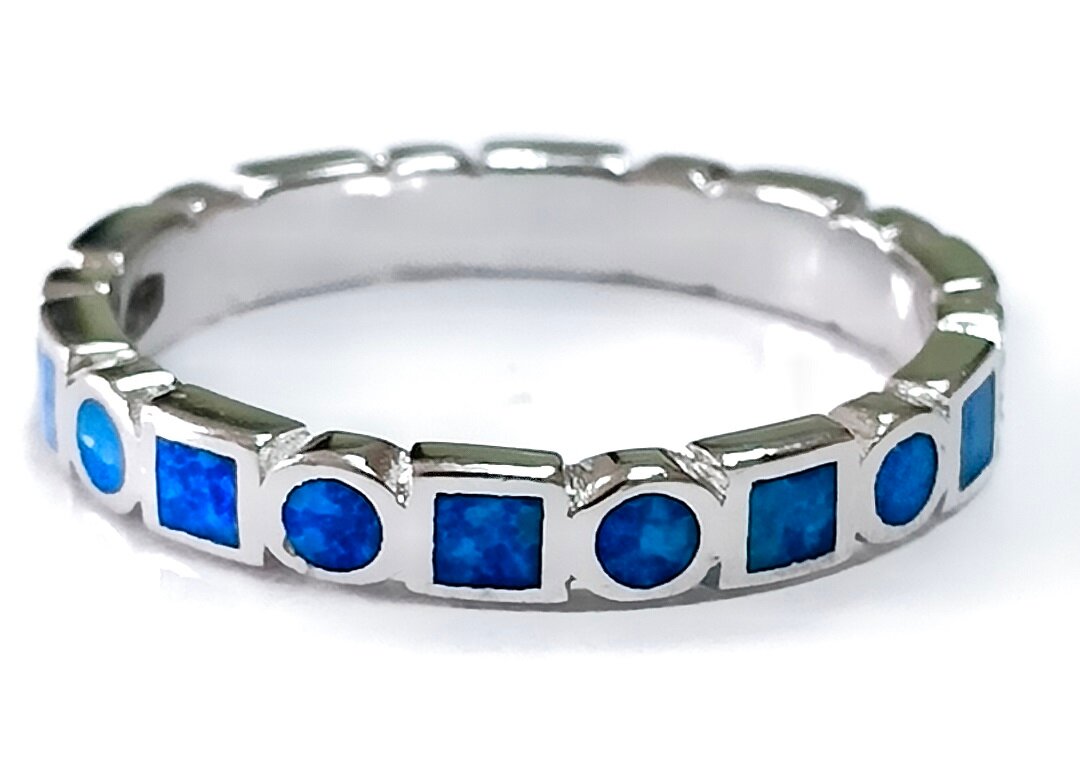 Особенностью этого кольца является вставка из синтетического опала, которая придает украшению неповторимый блеск и очарование. Ширина кольца составляет 3.0 мм, а размер - 17.5, что делает его удобным и комфортным для ношения.