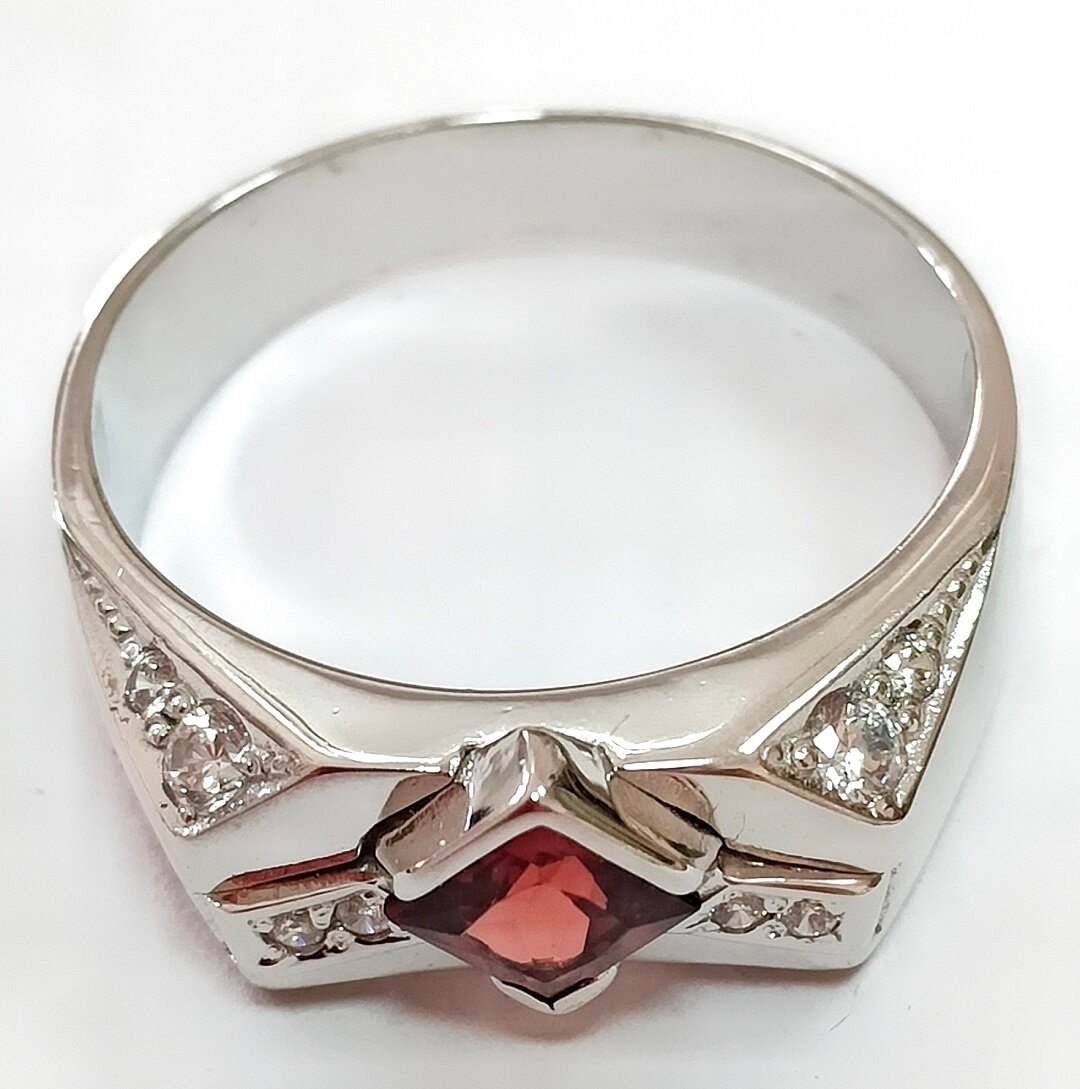 Ювелирное кольцо из серебра с гранатом и фианитами - стильный и элегантный аксессуар для мужчин, который подчеркнет ваш статус и индивидуальность.