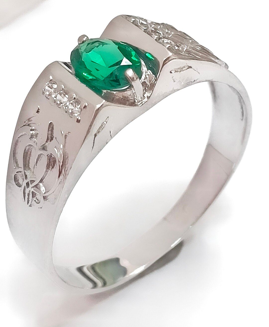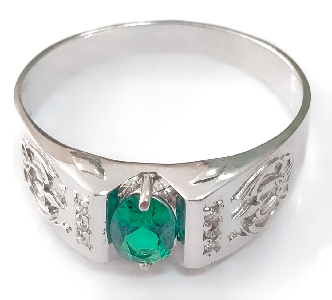 Ювелирное кольцо из серебра с изумрудом - стильное и элегантное украшение для мужчин, которое подчеркнет ваш статус и вкус. Изготовленное из качественного серебра 925 пробы, это кольцо станет отличным подарком для близкого человека или себя любимого.