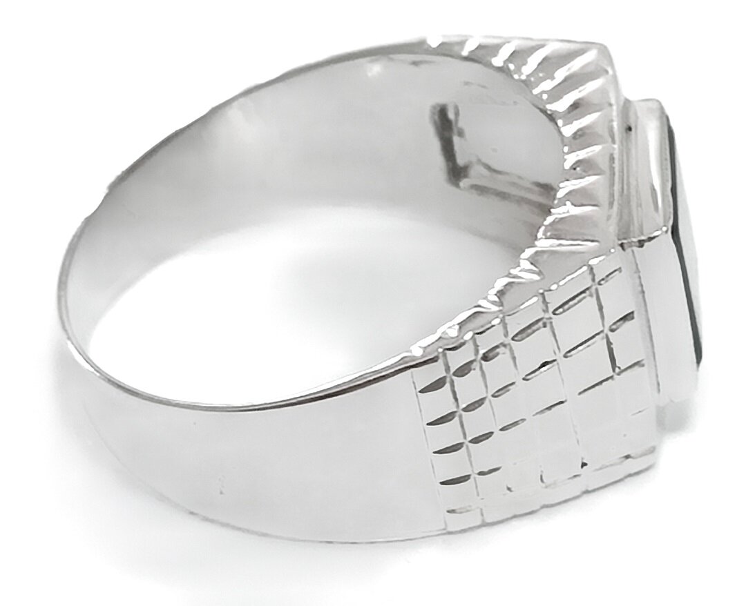 Ювелирное кольцо из серебра с ониксом - стильный и элегантный аксессуар для мужчин, который подчеркнет ваш статус и индивидуальность.