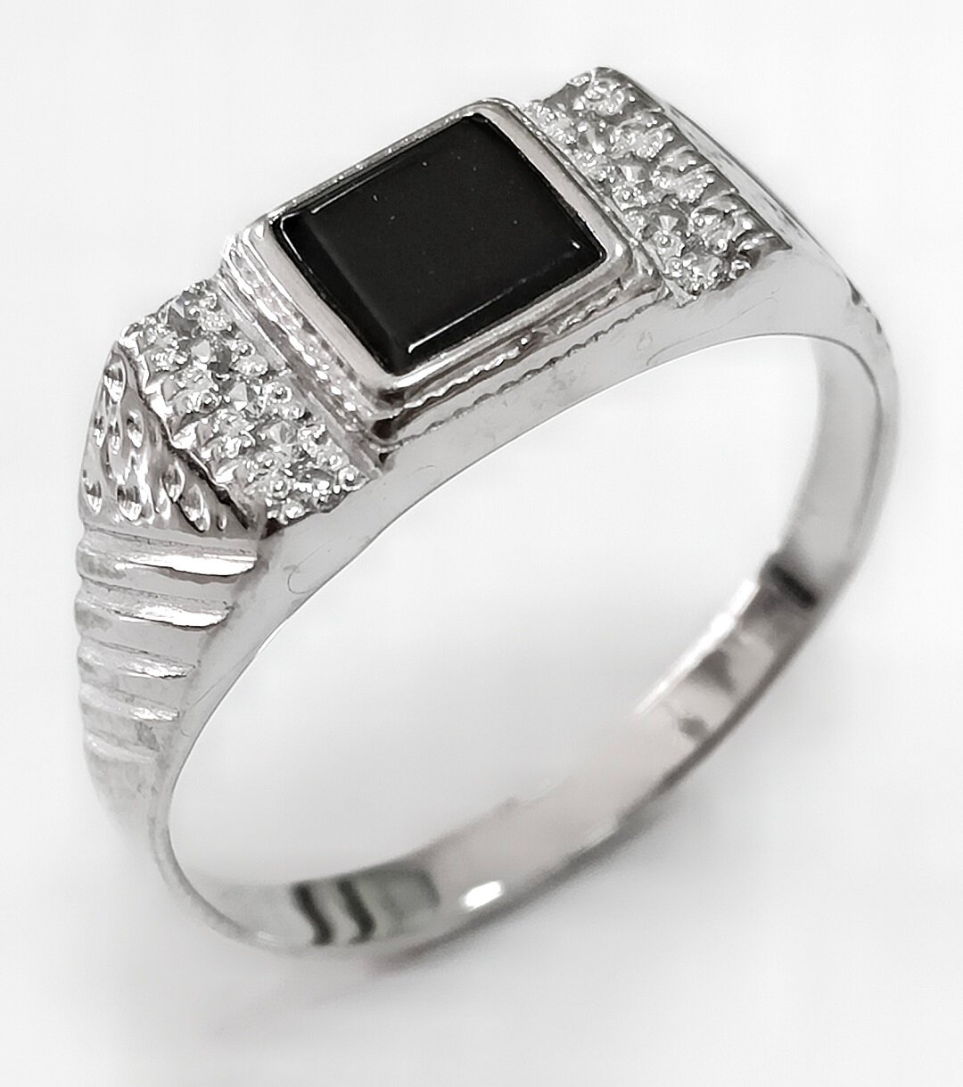 Ювелирное кольцо из серебра с ониксом - стильный и элегантный аксессуар для мужчин, который подчеркнет ваш статус и индивидуальность.