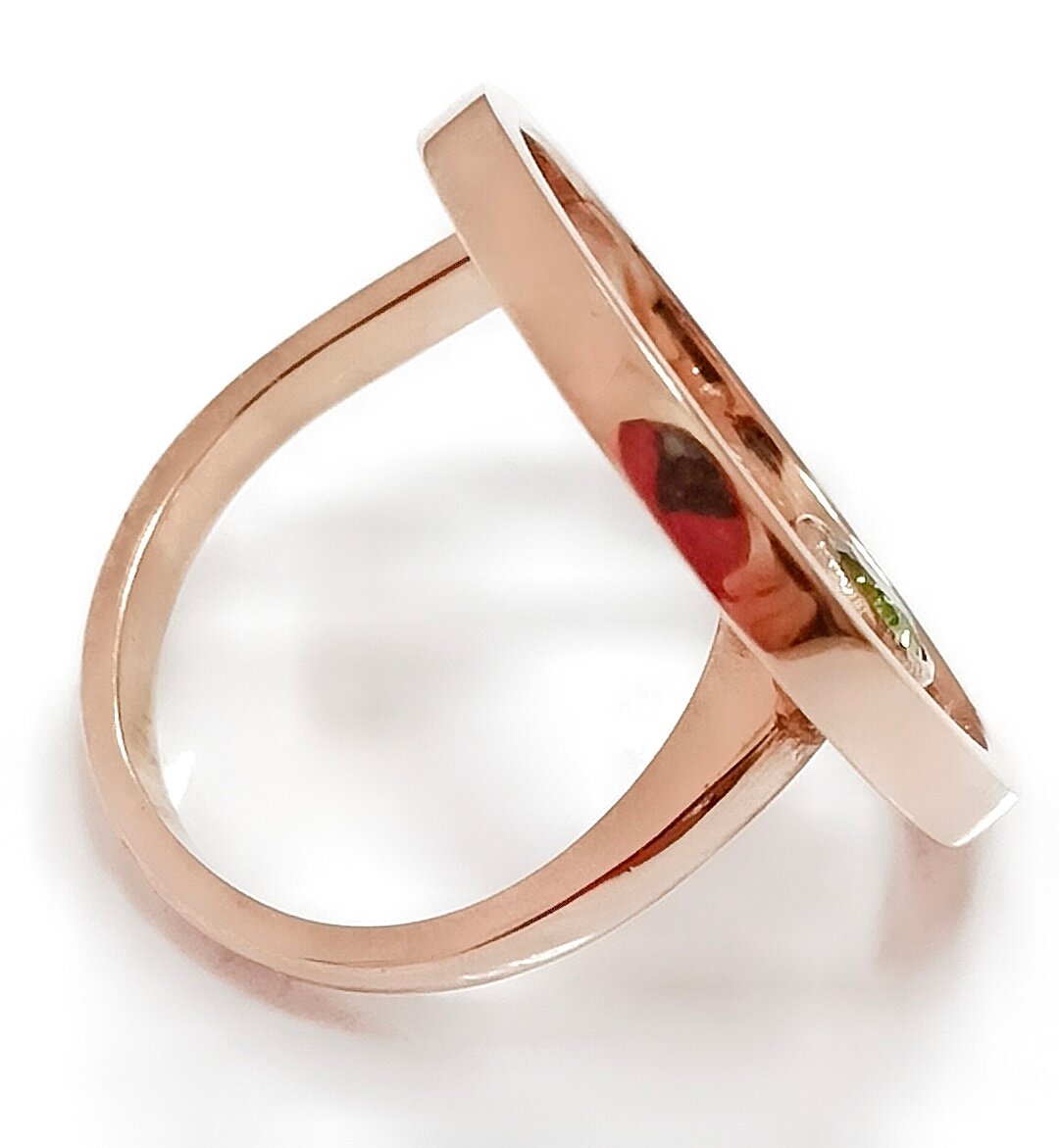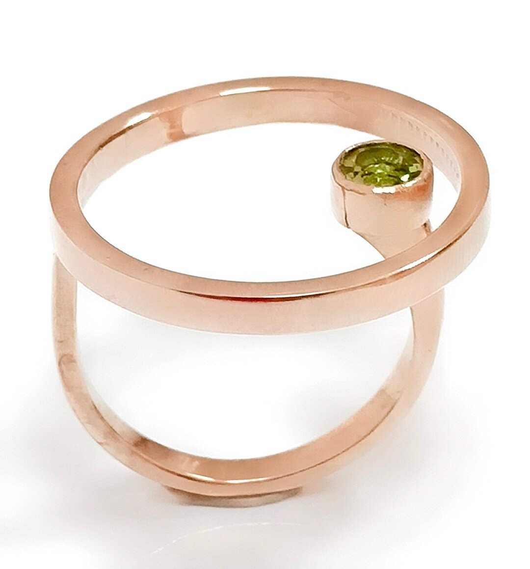 Вставка из хризолита придает кольцу особый шарм и изысканность. Хризолит - это полудрагоценный камень, который обладает множеством полезных свойств. Он способствует улучшению зрения, укрепляет иммунитет и помогает справиться со стрессом.