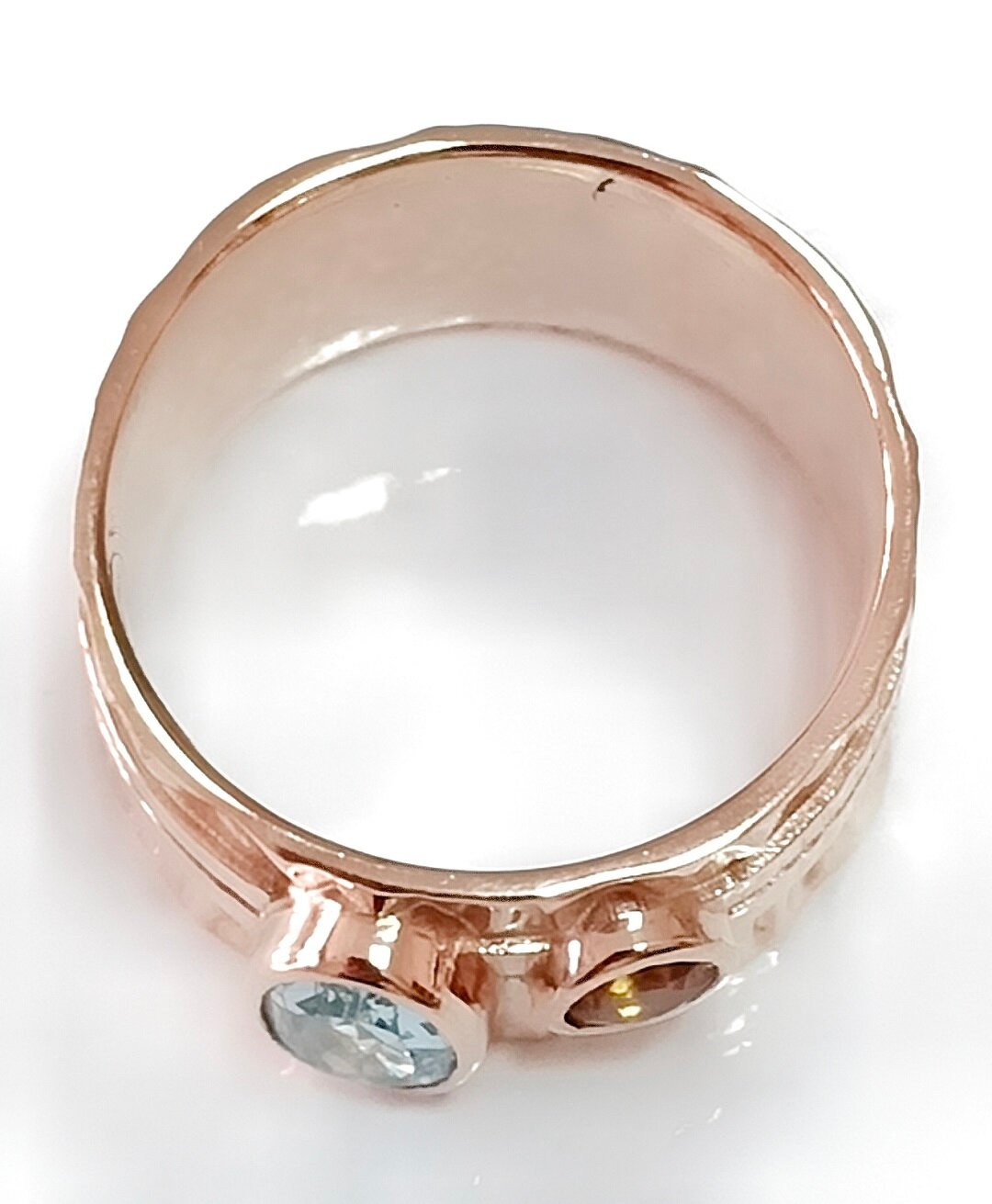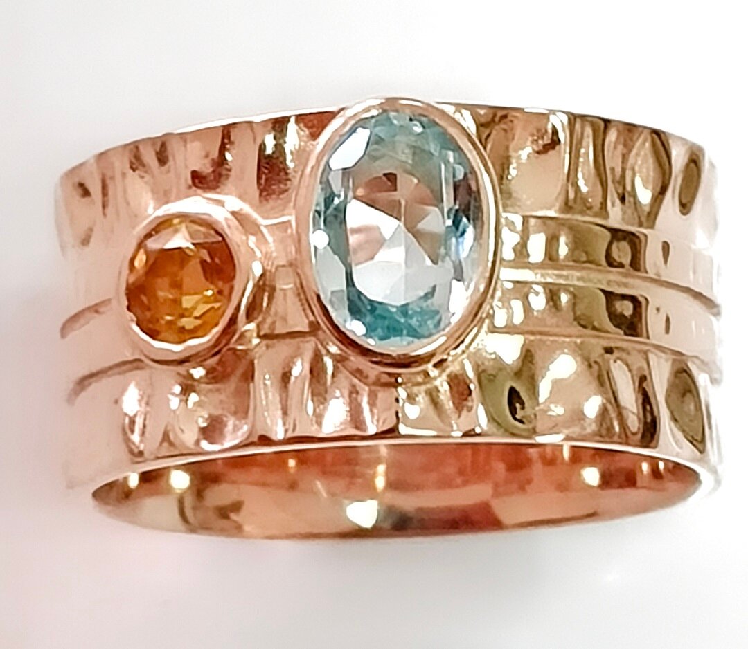 Кольцо украшено вставками из топаза и циркона, которые придают ему неповторимый блеск и сияние. Топаз известен своими магическими свойствами, а циркон добавляет изделию изысканности и блеска.
