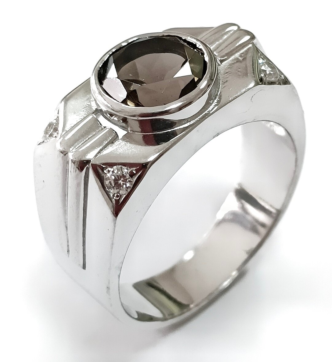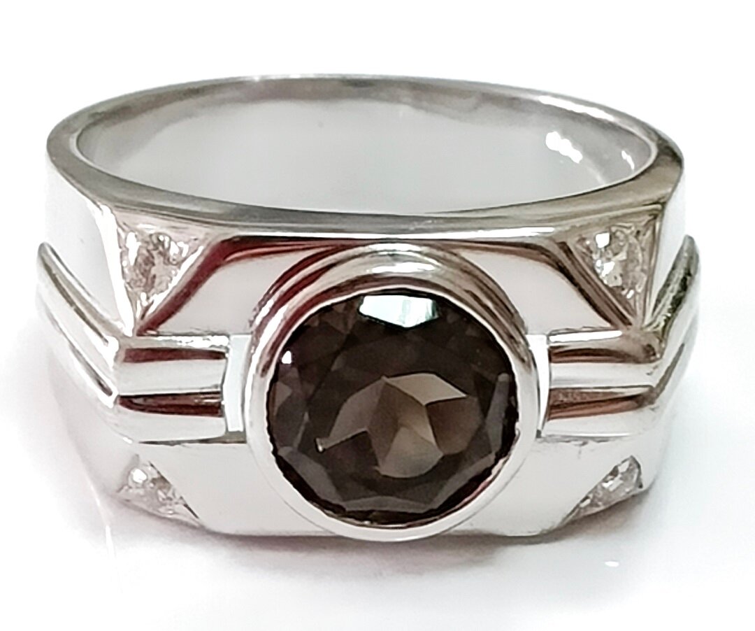 Ювелирное кольцо из серебра с раух-топазом и фианитами - стильное и элегантное украшение, которое станет прекрасным дополнением к вашему образу.