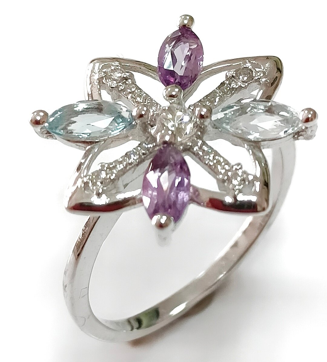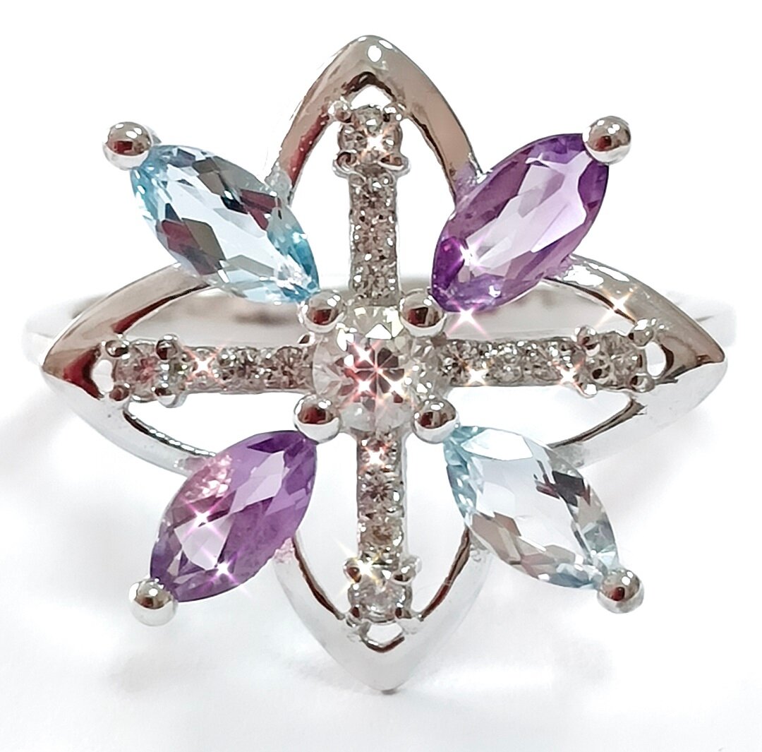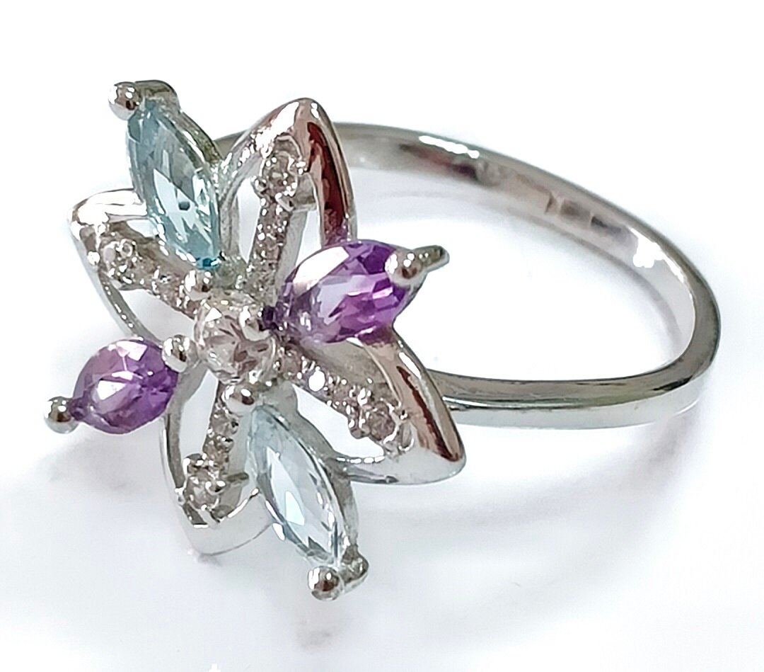 Аметист и топаз – красивые и яркие камни, которые добавят изысканности и шарма вашему образу. Фианиты, в свою очередь, придают кольцу блеск и сияние, делая его еще более привлекательным.