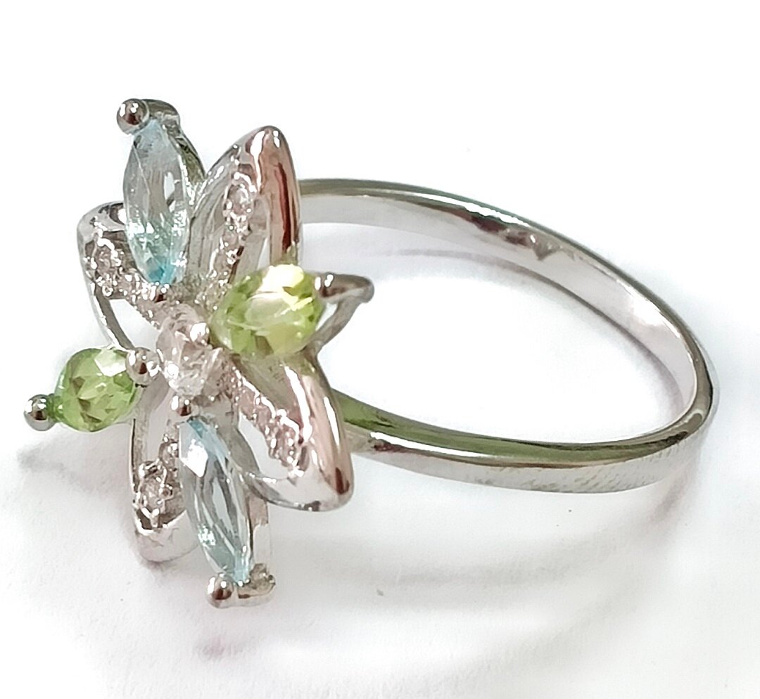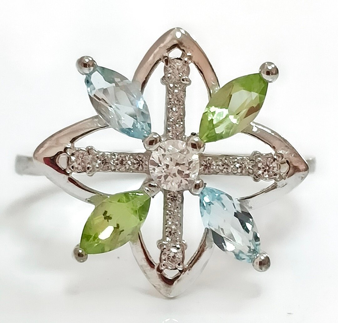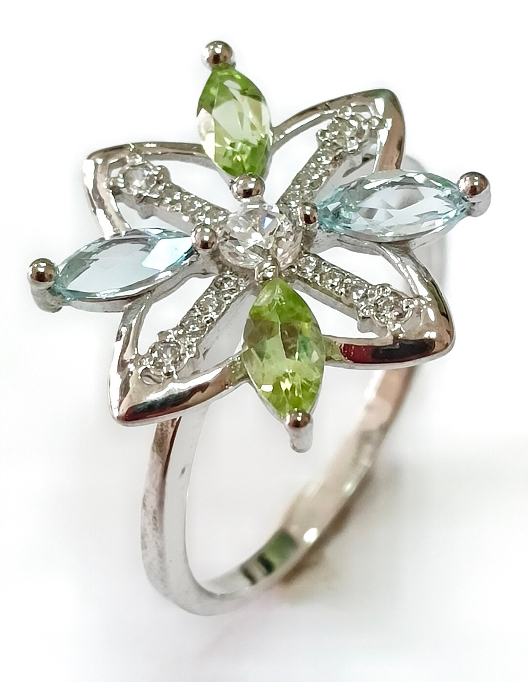Ювелирное кольцо из серебра с вставками из хризолита, топаза и фианита - стильный и элегантный аксессуар для современных женщин. Изготовленное из качественного серебра 925 пробы, это кольцо станет прекрасным дополнением к вашему образу и подчеркнет ваш изысканный вкус.