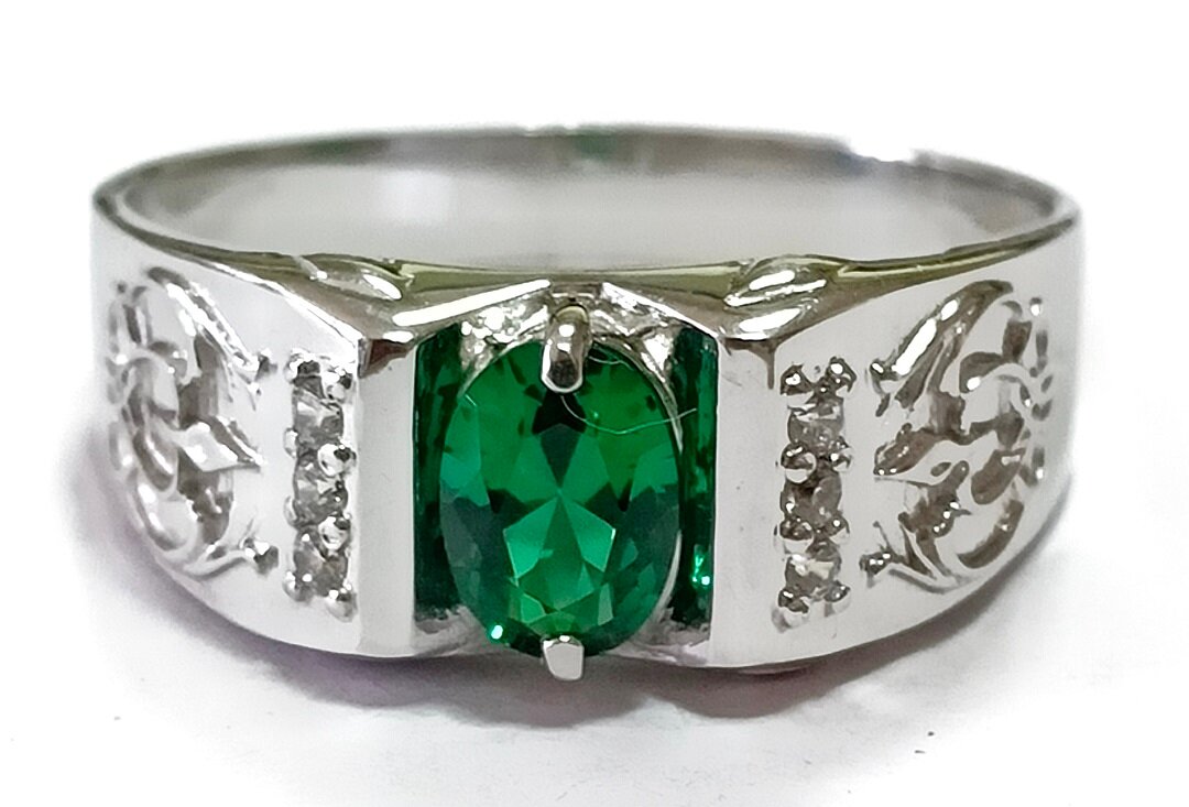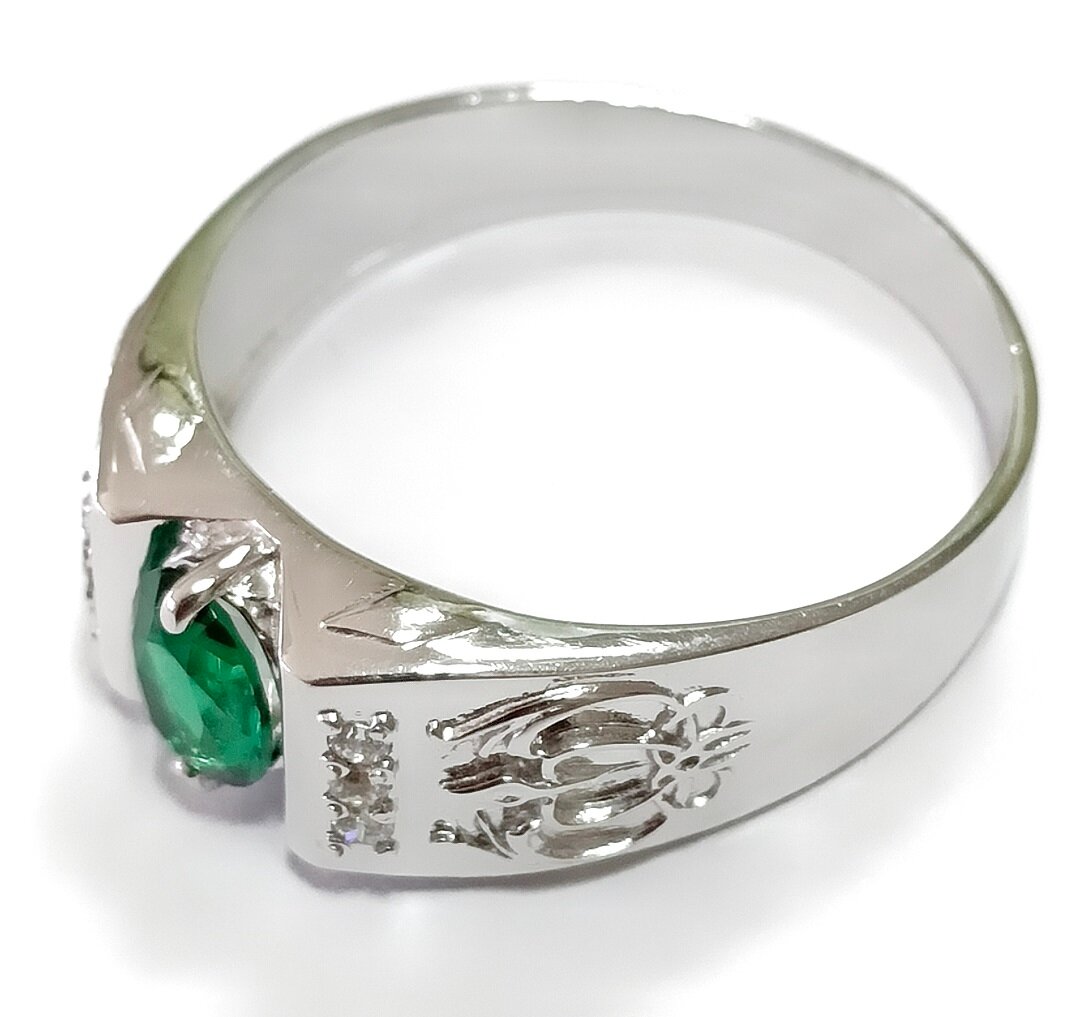 Ювелирное кольцо из серебра с нанокристаллом изумруда и фианитами - стильный и элегантный аксессуар для современных мужчин. Изготовленное из качественного серебра 925 пробы, это кольцо станет прекрасным дополнением к вашему образу и подчеркнет ваш изысканный вкус.
