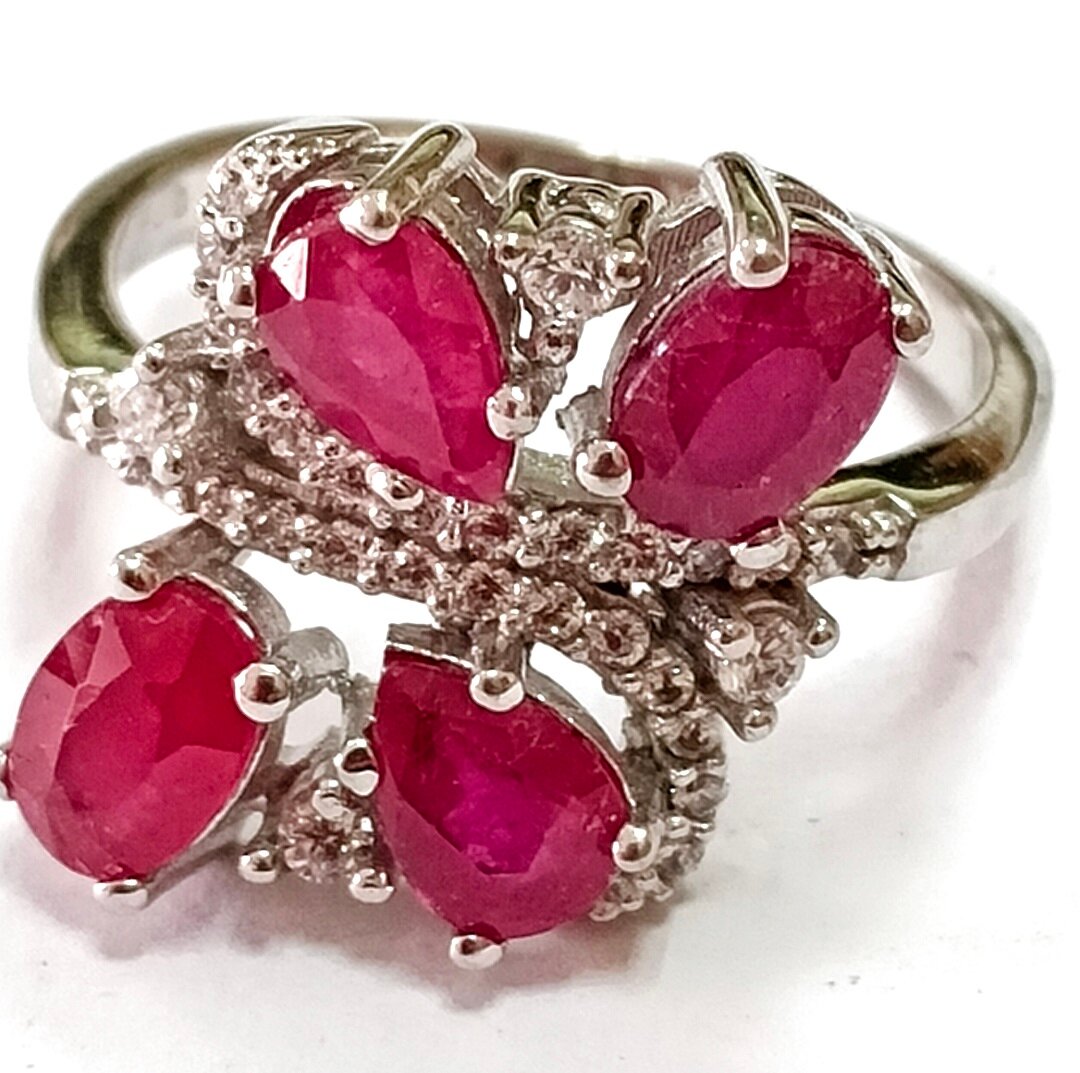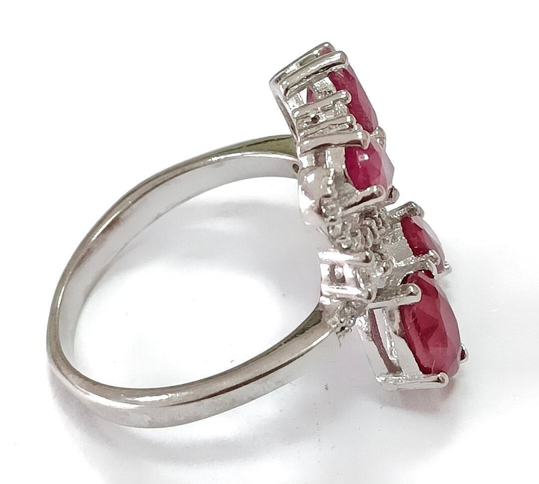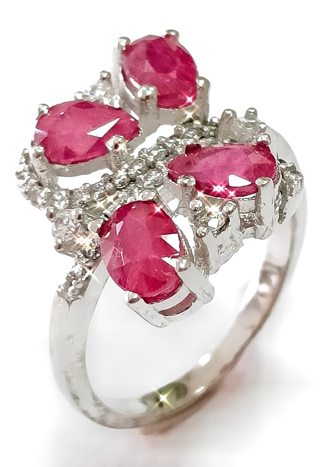 Ювелирное кольцо из серебра с рубиновой и фианитовой вставками представляет собой изысканное и стильное украшение, которое станет прекрасным дополнением к вашему образу.