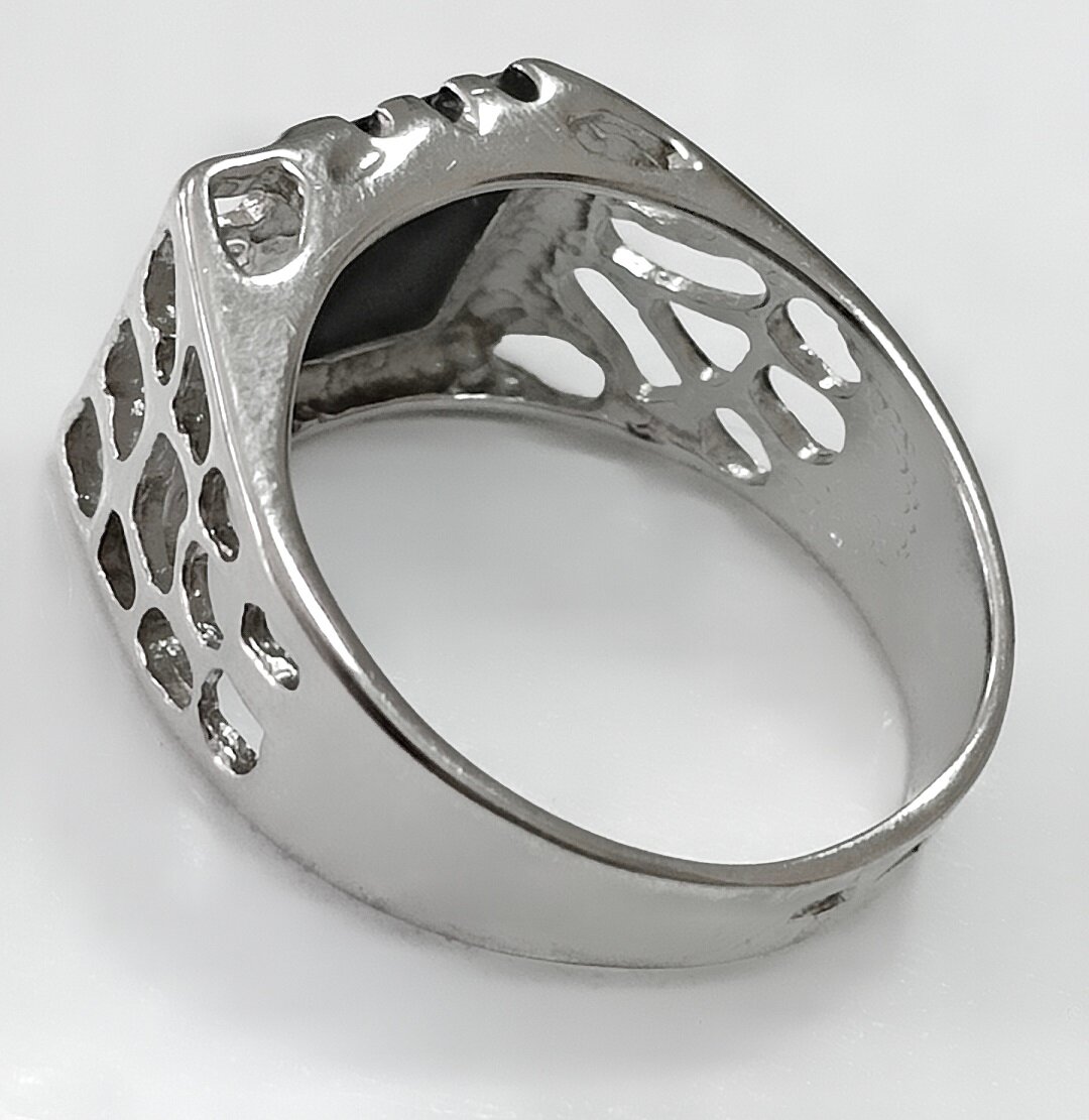 Мужской перстень выполнен из серебра 925 пробы, что гарантирует высокое качество и долговечность изделия.