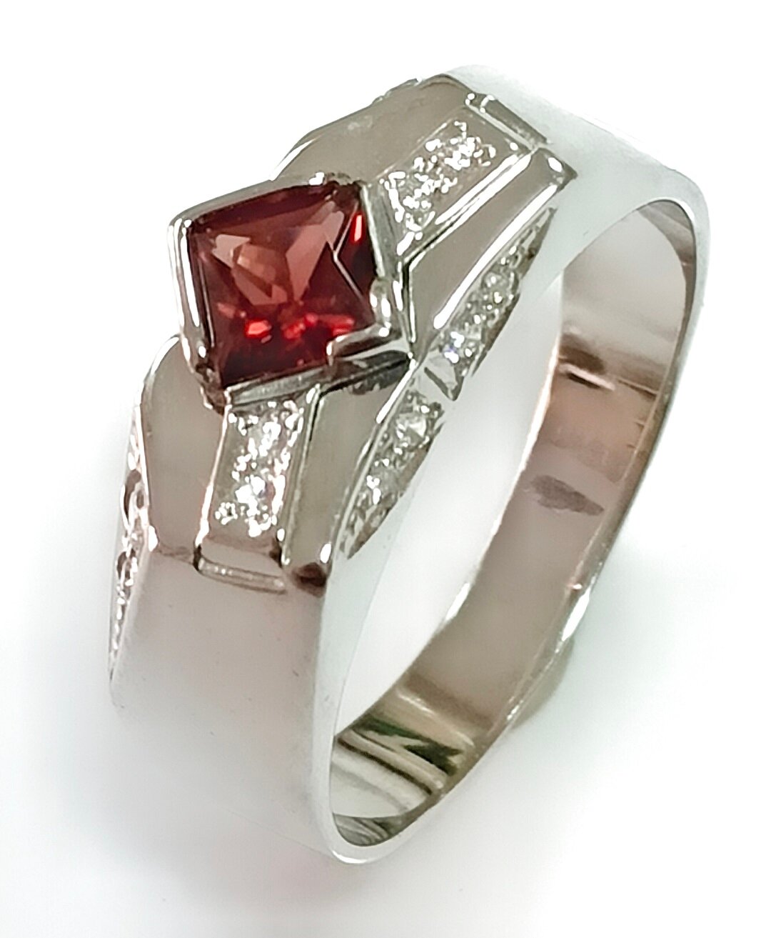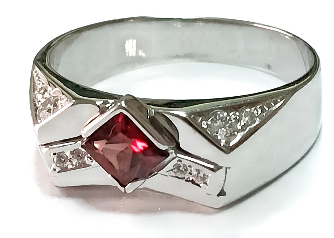 Мужское ювелирное кольцо с гранатом и фианитами: стиль и качество.