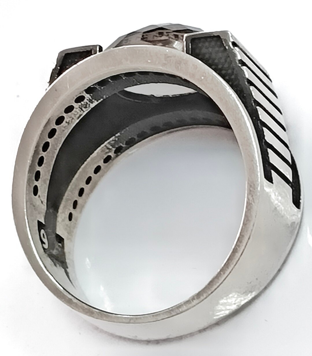 Чернение – это процесс обработки металла, который придает кольцу стильный и современный вид. Благодаря этому процессу, кольцо не только выглядит стильно, но и обладает высокой устойчивостью к коррозии и потускнению.