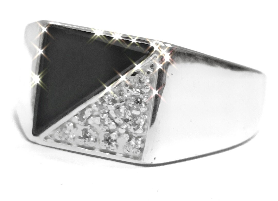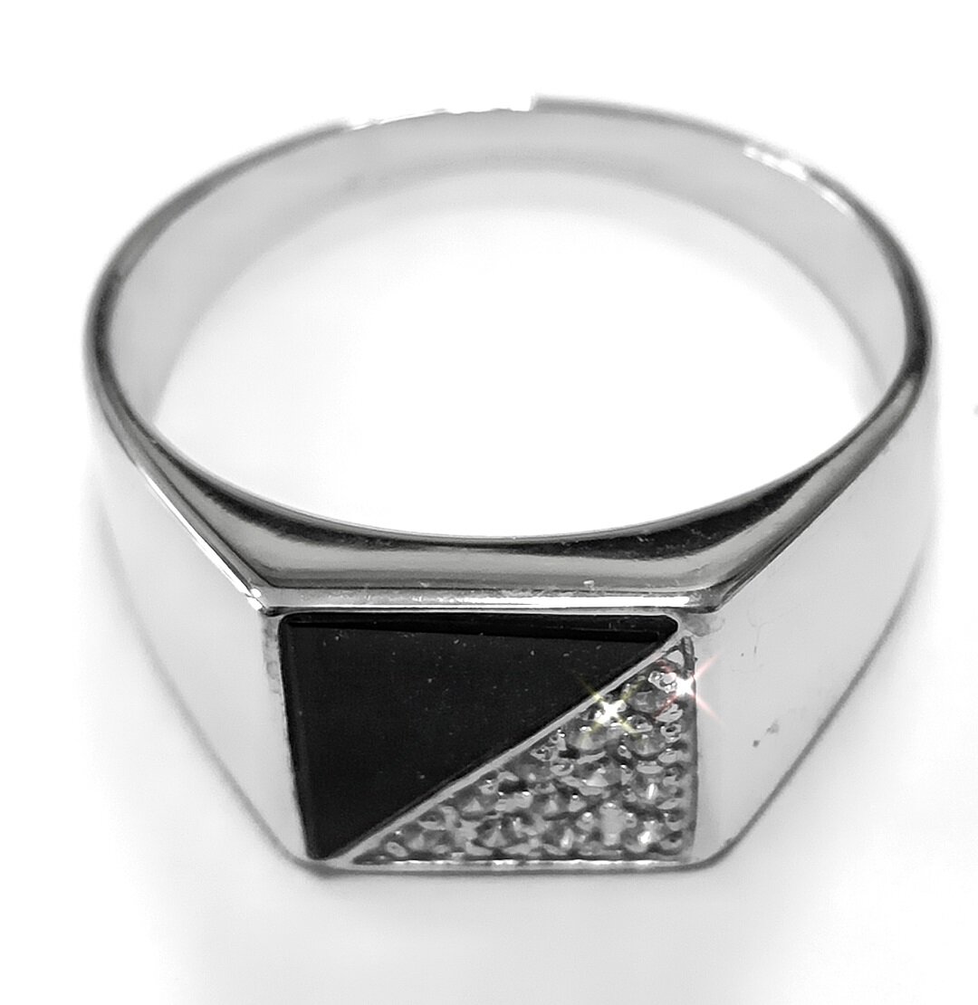 Ювелирное мужское кольцо из серебра с ониксом и фианитами - стильный и элегантный аксессуар для современного мужчины. Изготовлено из качественного серебра 925 пробы, что гарантирует долговечность и сохранность изделия на протяжении многих лет.