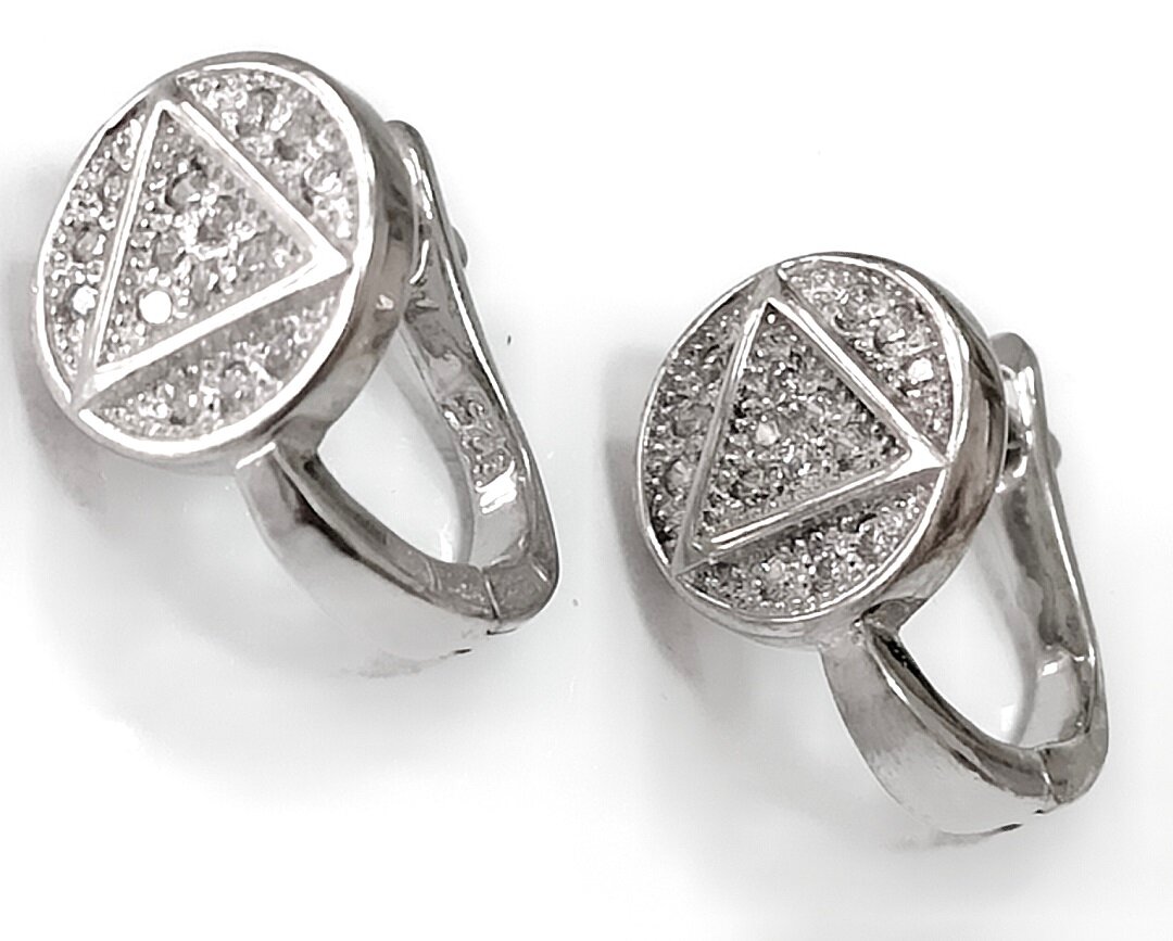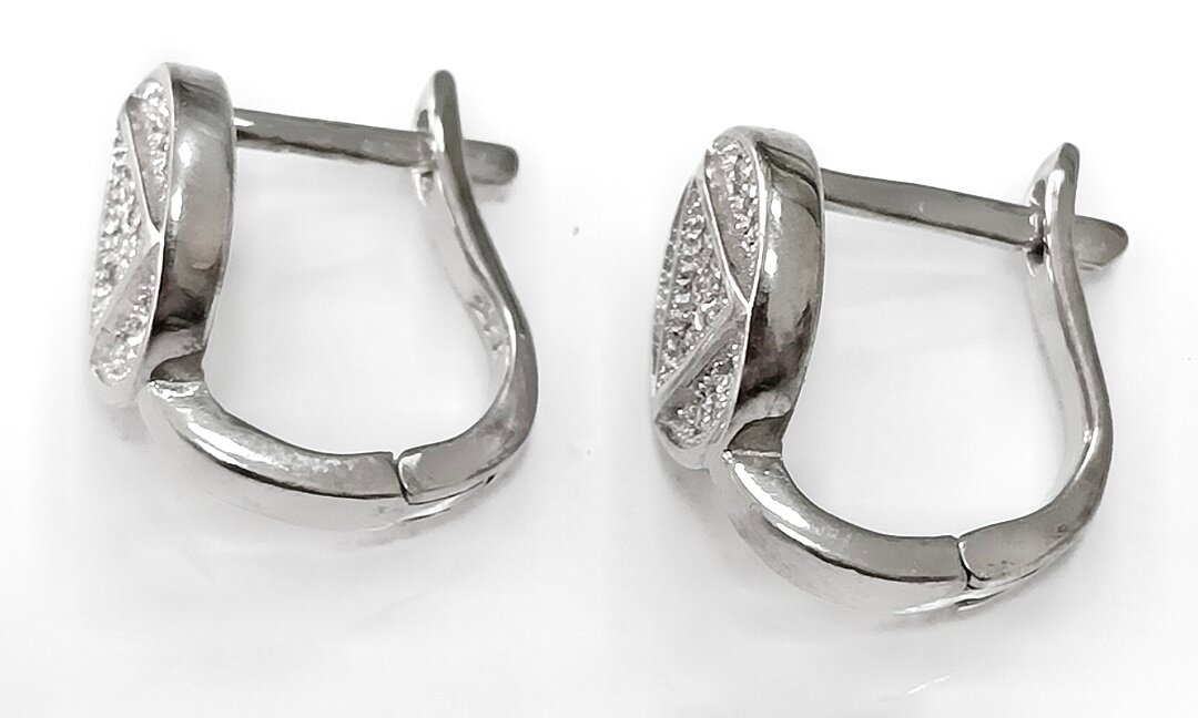 Серьги украшены фианитами, которые придают им блеск и сияние. Фианиты - это искусственные камни, которые по своим оптическим свойствам приближаются к бриллиантам, но при этом имеют более доступную цену.