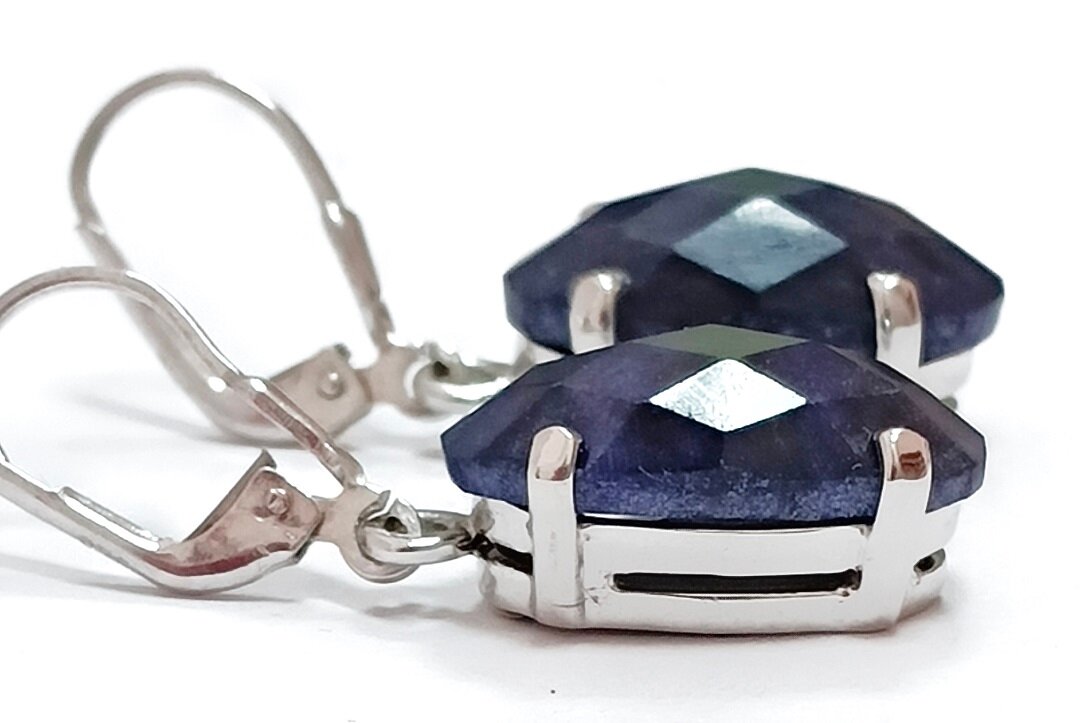 Серьги имеют стильный дизайн с подвесками и овальной вставкой из синего жадеита. Размер украшения составляет 3,8 см, что делает его заметным, но не вызывающим аксессуаром.