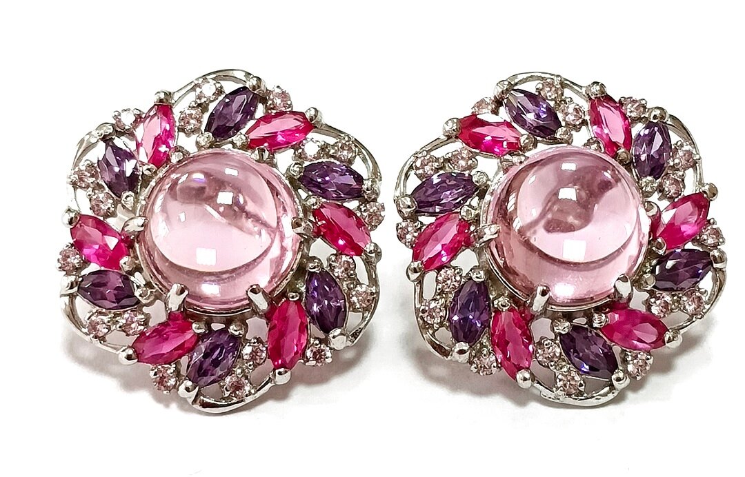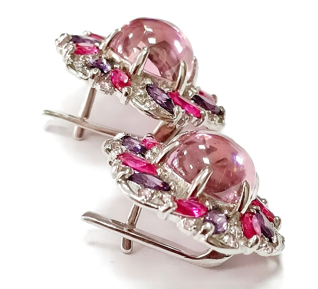 Украшение украшено двумя видами вставок: фианитами и синтетическим рубином. Фианиты придают серьгам блеск и сияние, а синтетический рубин добавляет изысканности и роскоши.