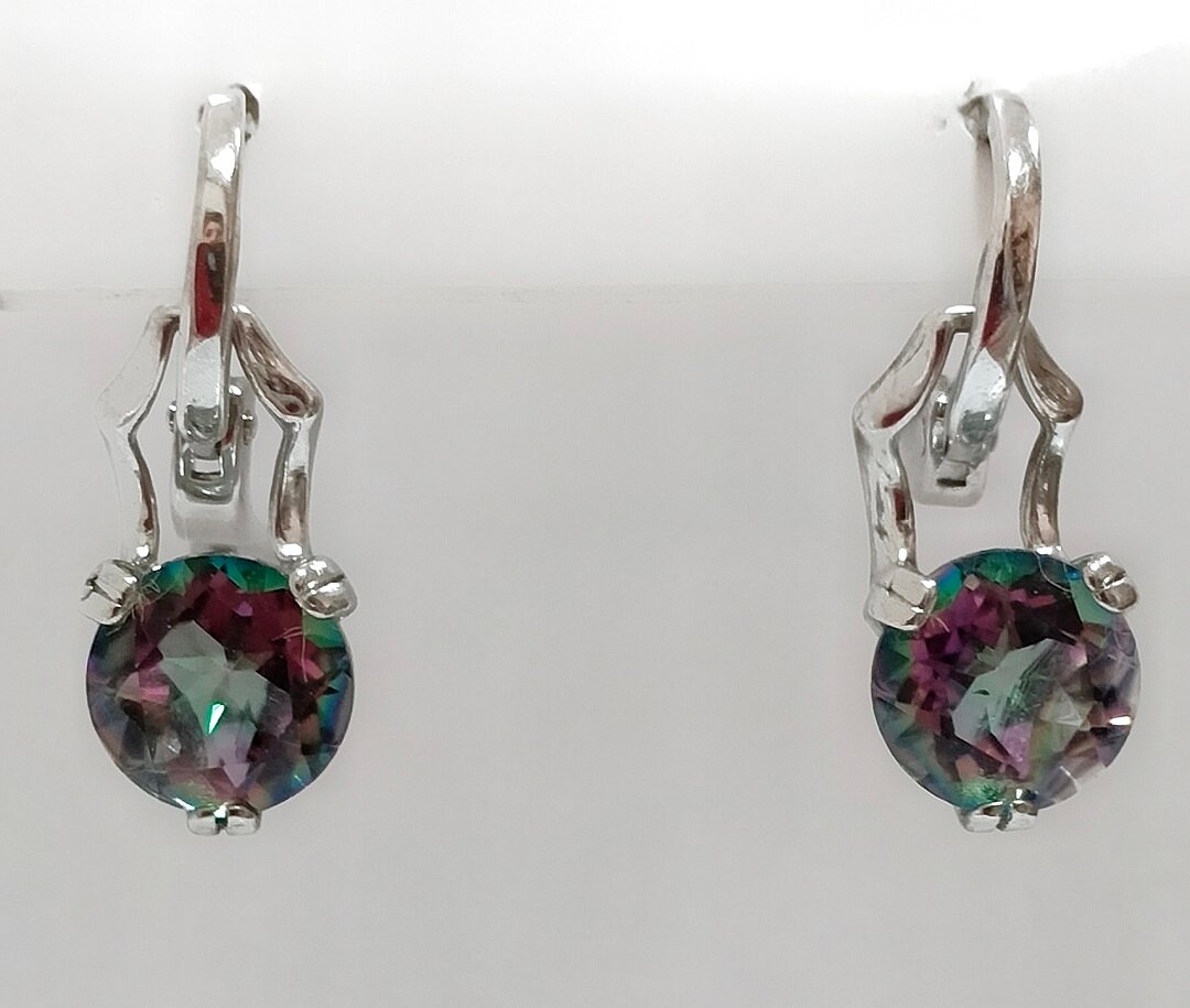 Серьги украшены мистическим кварцем зеленого цвета, который придает им неповторимый шарм и изысканность. Вставки выполнены в форме круга и имеют общий вес 4,48 ct.