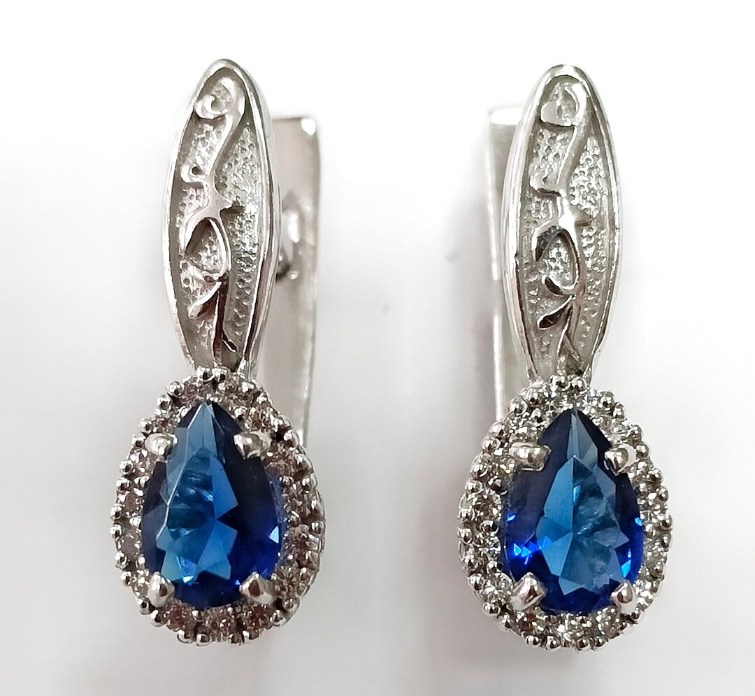 Серьги украшены фианитами, которые придают изделию блеск и сияние. Фианиты – это искусственные камни, которые по своим оптическим свойствам не уступают бриллиантам, но при этом имеют более доступную цену.