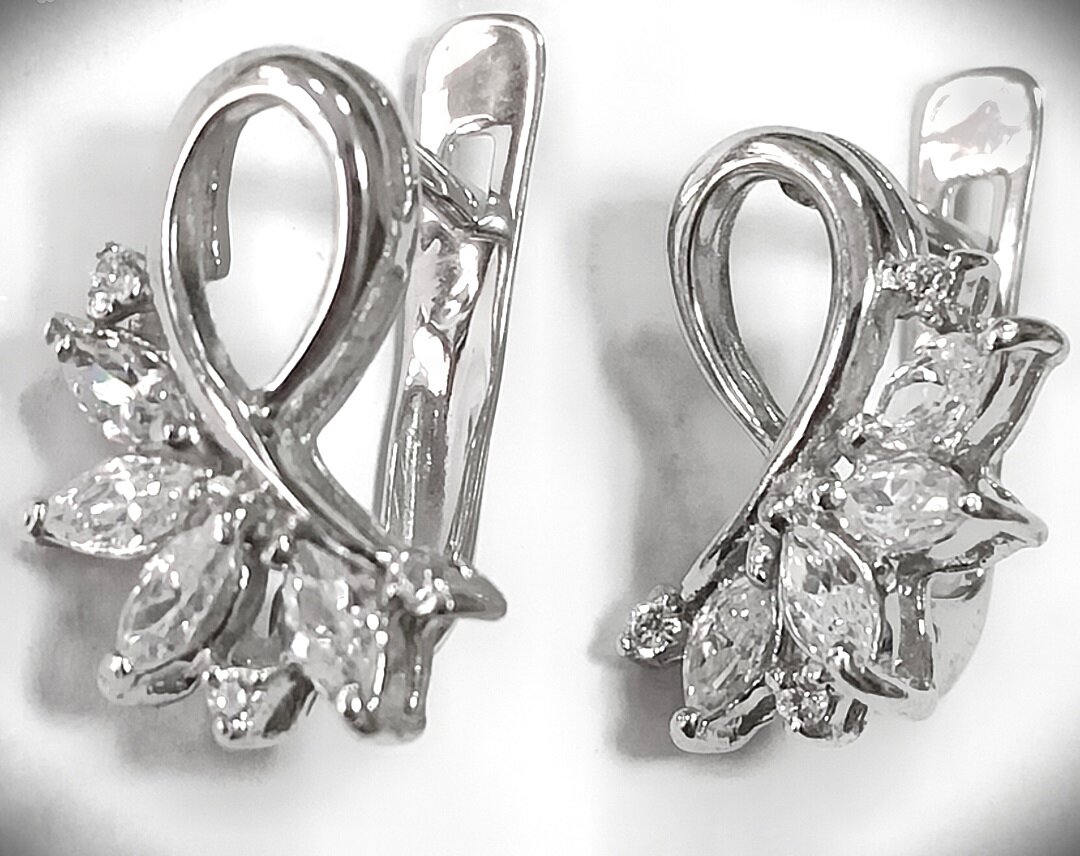 Серьги Эстерелла выполнены с отделкой родированием, что придает им дополнительную защиту от царапин и потертостей.