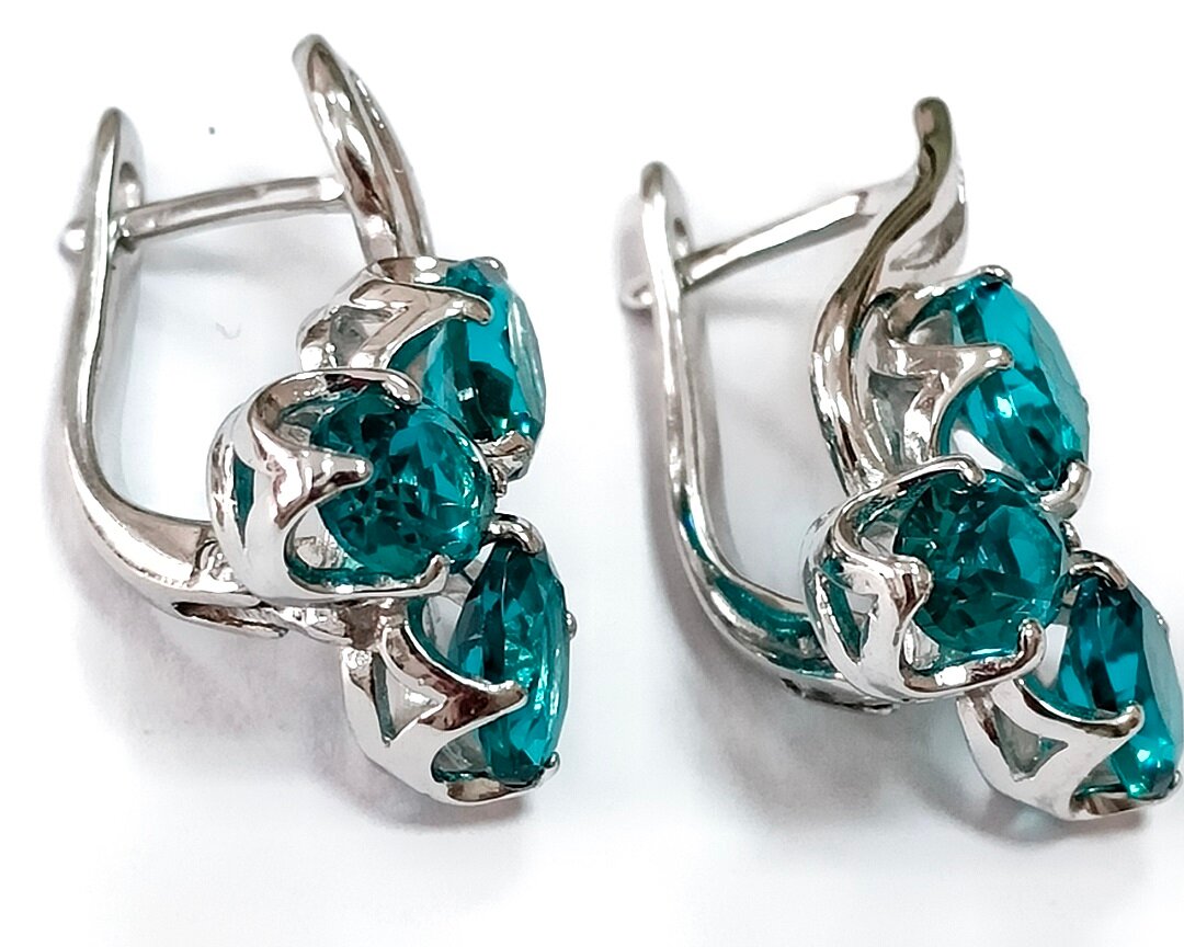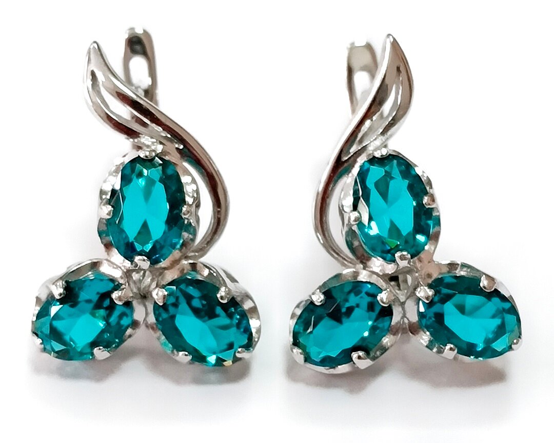 Украшение украшено бирюзовым фианитом, который добавляет серьгам яркости и выразительности. Средний вес изделия составляет 5.39 грамм, что делает его комфортным для ношения на протяжении всего дня.